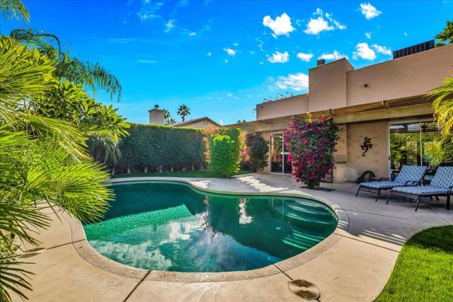 Welcome to Tucson--an intimate, gated enclave of just 72 Santa Fe-style homes crafted by award-winning builder Lance Alcano. This meticulously maintained Sedona model is a rare offering, showcasing true pride of ownership, thoughtful upgrades, and an exceptional indoor/outdoor lifestyle just minutes from the Indian Wells Tennis Garden, the Coachella Music & Arts Festivals, Desert Willow Golf; with steeply discounted resident rates!From the moment you step through the private, key-coded courtyard with its Spanish-style wooden door and fountain, you'll sense the quality and warmth of this home. Volumenous ceilings, wood shutters, custom paint, stone accents, and rich wood flooring create an inviting, light-filled ambiance throughout.The open great room is anchored by a striking stone fireplace, built-in media center, surround sound, and a stylish bar with wine refrigerator--food / beverage drawers; perfect for entertaining. The upgraded kitchen features slab granite counters, abundant cabinetry, Stainless Steel Wolf range, SubZero refrigerator, a double oven, with both a breakfast nook and a separate formal dining room nearby.The primary suite is a true retreat, offering patio access, a walk-in closet plus mirrored wardrobe, and a spacious bath with dual vanities, separate tub, and enclosed shower. All guest bedrooms are generously sized. Additional features include ceiling fans throughout, dual-pane windows/sliders, a dedicated laundry room, fresh interior/exterior paint, and newer HVAC. Home also includes an evaporative cooling system (never used by part-time owners).Step outside to your own private desert oasis with lush landscaping, landscape accent lighting, green space, a newly refinished sparkling saltwater pool and elevated spa, newer equipment, covered patio, misters, and outdoor kitchen. The epoxy-finished garage offers extensive built-in cabinetry for exceptional storage.Beautifully maintained, rich in character, and designed for effortless entertaining, this stunning Southwestern hacienda is the lifestyle home you've been waiting for. Quality furnishings available outside escrow.