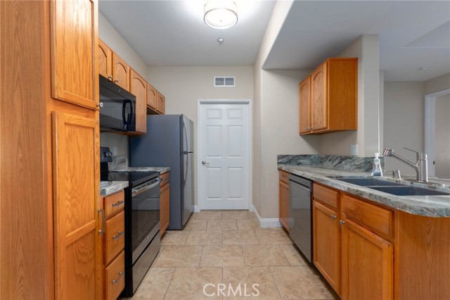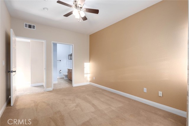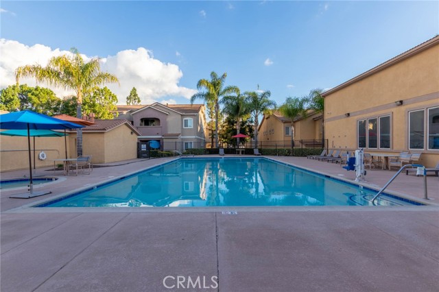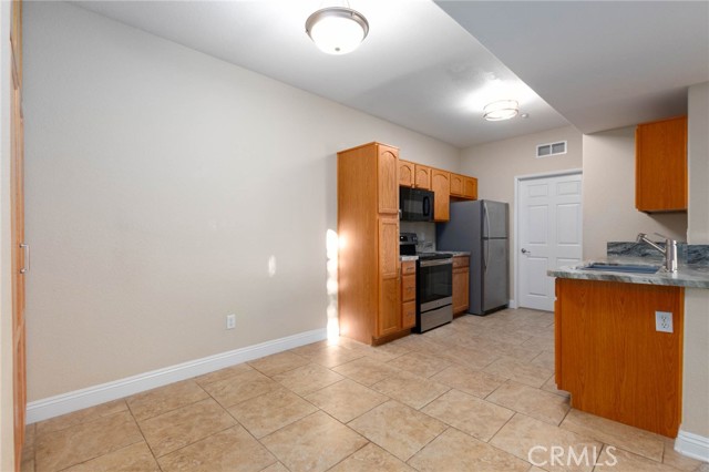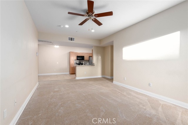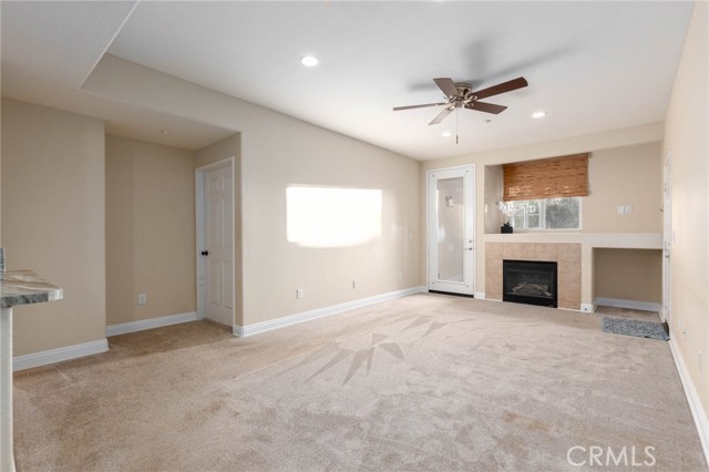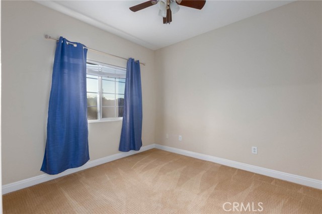 Super clean and spacious 3-bedroom, 2-bathroom upstairs condo located in The Reserves at Madison Park. The inviting living room features a cozy fireplace, recessed lighting, a ceiling fan, and access to a private deck perfect for relaxing. The eat-in kitchen includes a pantry, breakfast bar, and custom Fantasy Brown satin-finish marble countertops, and comes complete with a refrigerator. A convenient laundry room offers an electric dryer hookup. Both bathrooms have upgraded counters—Quartzite in the primary bathroom and Caesarstone Quartz in the guest bath. Additional features include neutral interior colors, paneled doors, and ceiling fans throughout. The home also includes a detached single-car garage. Community HOA amenities offer a pool and spa, fitness center, racquetball court, and clubhouse. Ideally located near shopping, freeways, and Old Town Murrieta, this condo offers comfort, convenience, and great community living.