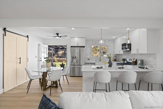 In the heart of Poway... Welcome to this beautifully renovated 3-bedroom, 2-bath home showcasing an open floorplan filled with abundant natural light. From the moment you enter, you’ll love the seamless flow of the living, dining, and kitchen areas—perfect for both everyday living and entertaining. The stylish kitchen features stainless steel appliances and opens effortlessly to the main living spaces. The oversized, spa-like primary bathroom offers a luxurious retreat with modern finishes and a calming ambiance. Situated on a large lot with an expansive backyard, this home provides endless possibilities for outdoor enjoyment, gardening, or future enhancements. An attached 2-car garage adds convenience and extra storage. Located within the highly sought-after Poway Unified School District, this home offers both comfort and exceptional value. Move-in ready and thoughtfully updated—this is one you won’t want to miss!