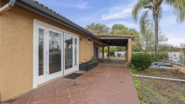 Just in time for the holidays! This beautiful, single-story, classic Southern California home, tucked away on a private drive with only three other homes, features an inviting floor plan. Enter through elegant double doors to your spacious living room with vaulted ceilings and French doors that open to a covered patio perfect for year-round entertaining. An open floor plan links the contemporary kitchen with the dining room and a family room with a cozy fireplace and another set of French doors for indoor/outdoor living. The primary bedroom features yet another set of walk-out doors, as well as a walk-in closet and private bathroom. Two additional bedrooms and a hall bath complete the main residence. Nestled in the corner of the lot is a versatile casita with a full bathroom: perfect for guests, a home office, fitness space, or creative pursuits. The wraparound yard includes a fountain, rosebushes, and fruit trees ready for their new caretaker. The attached two-car garage is complemented by an elegant stamped-concrete driveway that can accommodate a half-dozen cars, with potential space for RV parking. Discover this exceptional opportunity for your private retreat in Bonita.