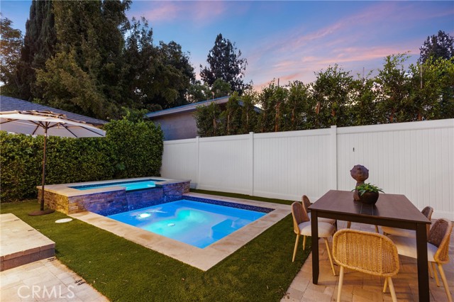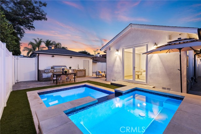 Situated on a peaceful cul-de-sac in a highly sought-after Sherman Oaks neighborhood, this turnkey home has been tastefully updated inside and out. Natural light floods the open and inviting floor plan, highlighting the charming details and timeless character found throughout. At the heart of the home lies the designer chef’s kitchen, equipped with premium stainless-steel appliances, quartz countertops and a built-in breakfast nook. Open to the kitchen, there’s a formal dining room and spacious family room that boasts lofty 14ft ceiling and a Panoramic Door that seamlessly extends your living space into the backyard. Step outside to your private retreat, where you’ll find an oversized spa with a cascading waterfall flowing into the heated pool, a fully equipped summer kitchen, outdoor shower and ample patio space for relaxing or enjoying an al fresco meal. This home offers four generously sized bedrooms and three full bathrooms, including a luxurious primary suite that features a custom built-in closet and spa-inspired bathroom, complete with a soaking tub, large glass-enclosed shower and double vanity. Additional highlights include a formal living room with a cozy fireplace, dedicated laundry room, security system, smart home features (built-in speakers, Nest thermostat, etc.) and a finished detached two-car garage. This property is conveniently located just moments from Westfield Fashion Square, Ventura Boulevard’s vibrant shopping and dining scene, and top-rated public/private schools.