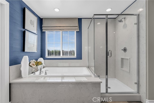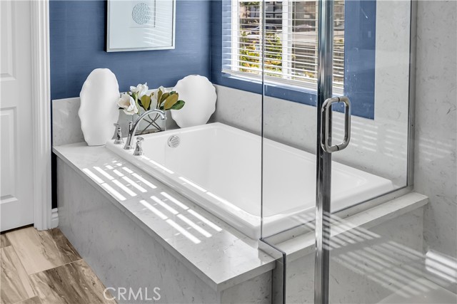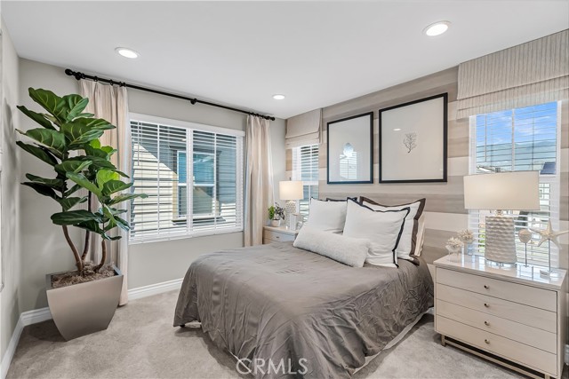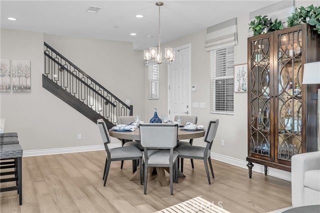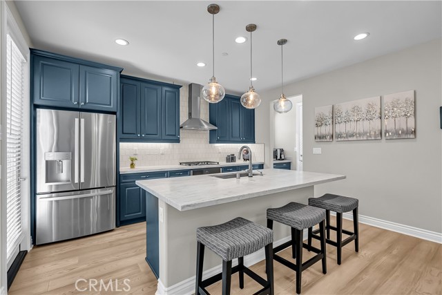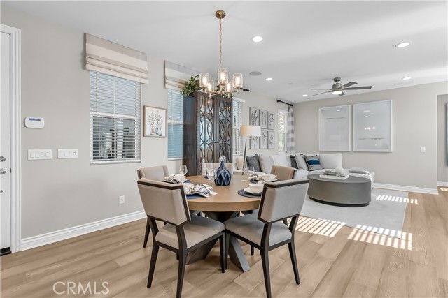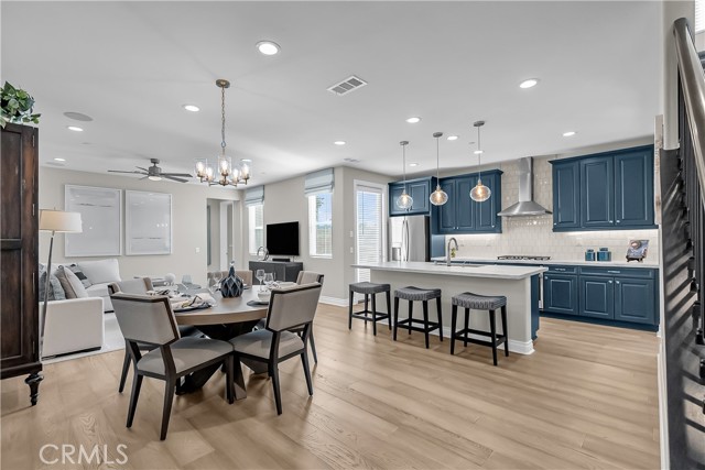 Highland Park – Former Model - Designed as the exemplary iteration of the popular Norcroft floor plan, this is not an average production home. The professional interior design elements, along with curated upgrades throughout, enhance this open floor plan that boasts a bedroom and full bath on the first floor. The gourmet kitchen serves as the focal point of the common areas, uniting design and function. Striking deep-blue cabinetry complements the stainless-steel appliance suite, full height backsplash, center island with leather finished marble. The same design theme continues to the butler’s pantry/coffee bar and walk in pantry that are conveniently ensconced in an alcove off the kitchen. Just beyond the kitchen, the light-filled family room offers large windows, recessed lighting, and warm wide-plank flooring creating a bright, welcoming atmosphere. Up the custom banister and handrail, the second floor continues to impress. At the terminus of the staircase, a large loft with built in desk awaits. The primary suite sits on the opposite side of the 2nd floor from the secondary bedrooms, allowing for privacy. The primary suite is an opulent affair with a spa-like ensuite bath and walk-in closet. Two more bedrooms and a laundry room(w/sink) complete the second floor. Outside, the home wraps the backyard patio, creating a private courtyard for entertaining or dining. The yard is fully landscaped with turf, trees, ornamental gravel, and a drip system. Value add items such as PAID solar, a whole house fan, 2 car attached garage, and a premium lot make this a must see. Highland Park offers robust amenities: pool, spa, clubhouse, playground, dog park, and gated entry. This one is a must see.