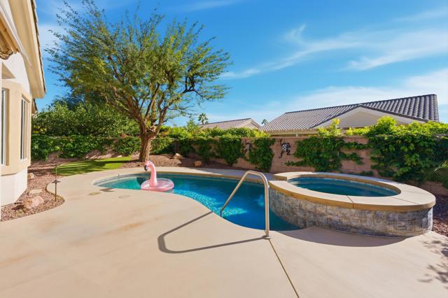 Welcome to 78301 Bovee Circle, a beautifully updated Barbados plan located on a desirable corner lot in Sun City Palm Desert. This home offers privacy, natural light, and a wonderful indoor-outdoor flow that makes desert living effortless!The south-facing rear yard is a true highlight. Elevated above the home behind it, the backyard enjoys extra privacy, wonderful natural light, and peekaboo mountain views. In 2024, a private saltwater pool and spa were added, creating an incredible retreat with covered patio seating, expandable shade coverings, turf, and easy-care landscaping. It is the perfect place to unwind, whether you are enjoying our amazing desert sunsets or relaxing through sun-filled days.Inside, the home has been tastefully updated with neutral laminate flooring and a cozy, modern feel throughout. The kitchen features quartz countertops, a gorgeous tile backsplash, refreshed cabinetry, stainless steel appliances, and additional built-in cabinetry with an abundance of storage! The primary suite offers a spacious walk-in closet and an upgraded bath with a conveniently designed walk-in tub and shower combo. The guest bathroom has also been fully updated with a designer tile shower, a newer vanity, and fresh finishes.This home sits just a short distance from the popular Sunset View Clubhouse, offering convenience along with comfort. With stylish upgrades, a stunning backyard, and the lifestyle Sun City is known for, this property delivers the ideal desert retreat!