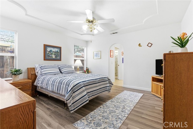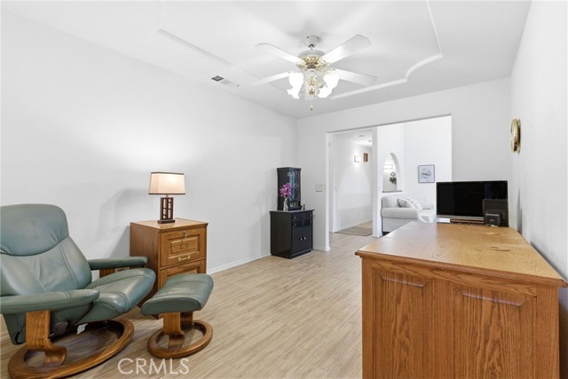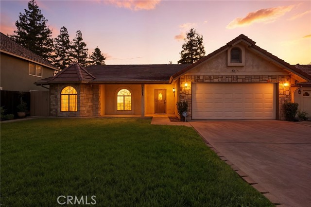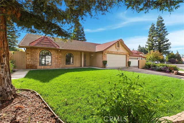 Welcome to 1845 E Evergreen Ave., a beautifully maintained 3-bedroom, 2-bath home tucked at the end of a quiet Visalia cul-de-sac. Inside, you're greeted with great natural light, vaulted ceilings, and charming architectural details throughout. Just off the entry is a wonderful auxiliary space-perfect as a formal dining room, home office, playroom, or flex area to fit your lifestyle. The spacious kitchen offers an abundance of storage, extensive cabinetry, microwave & oven, a large breakfast bar, and an in-home laundry room conveniently located nearby. The living area feels warm and inviting with its stone fireplace and custom built-ins-an ideal place to unwind! The backyard is designed for easy outdoor living, featuring a large covered patio plus two additional seating areas perfect for entertaining, outdoor dining, or simply enjoying your morning coffee. Mature shade trees, privacy hedges, and thoughtful landscaping create a peaceful retreat with low-maintenance appeal. Located near Annie R. Mitchell Elementary and a nearby neighborhood park, this home sits in a highly desirable pocket of Visalia with easy access to shopping, dining, and commuter routes. A rare combination of charm, functionality, and location-this is one you won't want to miss.