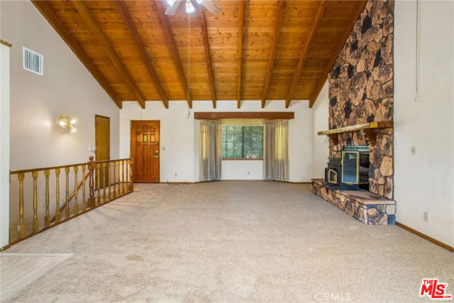 Reasonably priced mountain home/cabin. 2942 sq. feet in Switzerland subdivision of Lake Gregory. Great income or purchase to own. Beautiful open living room with wood beamed ceilings. Updated kitchen with stainless steel appliances. Large family room. Fire places. Third level has separate entry for tenants or guests. Two car garage with drive way.