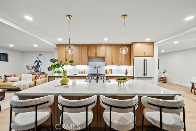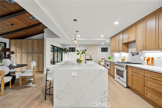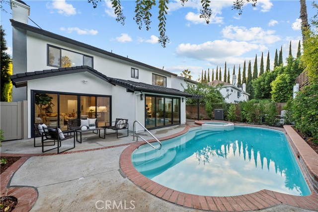 Welcome to this meticulously reimagined home, privately set on a quiet cul-de-sac in prime Sherman Oaks. Thoughtfully redesigned, it blends clean modern finishes with a warm, comfortable feel—offering an elevated lifestyle in one of the Valley’s most desirable pockets. Inside, natural light fills the home, with oversized windows and expansive sliding doors enhancing the indoor–outdoor flow and showcasing the resort-like pool and spa, multiple entertaining areas, and inviting backyard setting. The open layout connects the chef’s kitchen with the living, family, and dining areas, creating a seamless environment ideal for gatherings or quiet evenings at home. The spacious primary suite serves as a true retreat with calming backyard views and a spa-inspired bathroom featuring dual vanities, a freestanding soaking tub, walk-in shower, and generous closet space, while three additional bedrooms offer flexibility for guests, family, or office needs. The backyard captures quintessential Southern California living with a sparkling pool accented by cascading water features and several lounge and dining areas perfect for relaxing or entertaining. The manicured front yard further elevates the curb appeal with a strong presence and an expansive driveway. All of this sits moments from Ventura Boulevard’s top dining, shopping, and entertainment, as well as nearby parks, Westfield Fashion Square, Trader Joe’s, and more—an ideal blend of comfort, style, and location.