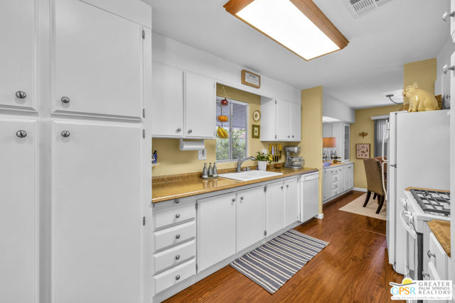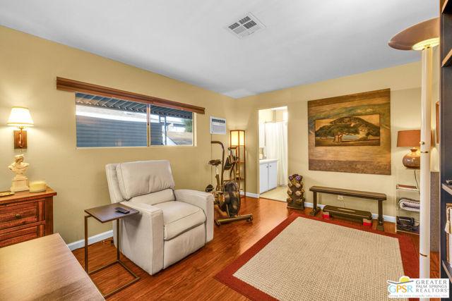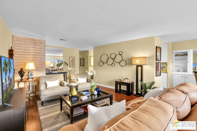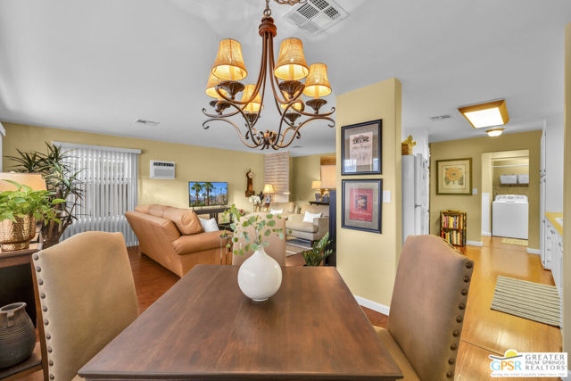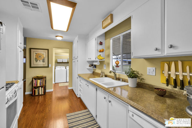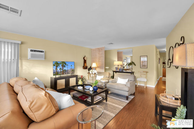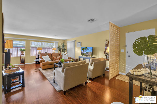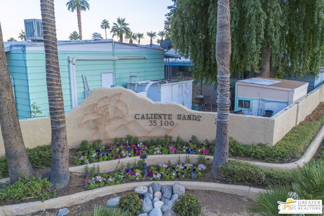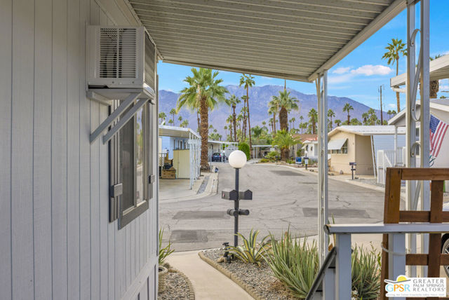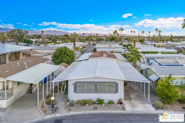Welcome to Caliente Sands, a well-kept 55+ community where spectacular mountain views, an active lifestyle, and true affordability come together. If you've been searching for a warm, meticulously clean, furnished home that blends comfort, convenience, and value - you won't find a better home, in a better location, at a better price - so see this one before anything else. This beautifully maintained manufactured home sits on a rent-controlled homesite (for full-time residents), offering one of the most budget-friendly monthly payments in the entire valley. Even with updated rates for new owners, the site rent remains exceptionally competitive. Add in the priceless sweeping vistas of the San Jacinto Mountains from your front windows plus the twinkling lights from the Palm Springs Aerial Tram station at night, and this home already stands apart. Inside, the space feels bright, welcoming, and easy to care for, with laminate flooring throughout and vinyl in the bathrooms. The floor plan includes a generous primary suite with an ensuite bath, full-wall mirrored closets with adjustable shelving, and additional built-ins currently used as a flexible office/den/exercise room. A second bedroom with a walk-in closet provides excellent guest space or extra storage. Practical features make everyday living effortless: central heating, efficient in-wall Toshiba AC units that keep the home cool during warmer months, and a dedicated laundry room with full-size washer/dryer hookups and tall cabinet storage. Full-length awnings on both sides create shaded outdoor living spaces, and a semi-enclosed area with a 6' x 8' aluminum shed plus bonus storage is ideal for a workshop or hobby zone. Low-maintenance landscaping and your own lemon tree complete the picture. The community lifestyle is a true highlight. Caliente Sands offers a clubhouse with full kitchen, sparkling pool, spa, sauna, pet park, library, and laundry facility. A steady calendar of activities includes water aerobics, potlucks, monthly socials, donut mornings, outings, and neighborly get-togethers makes it easy to stay connected and enjoy the best of 55+ living. The location is as convenient as it gets. You can stroll to nearby dining and services, including Tony's Burgers, Michaels Cafe, Barrel District Pizza, barber shop, Circle K, and a gym. Agua Caliente Casino is also just minutes away. Turn-key furnished per the seller's inventory, this home is truly move-in ready. Park approval is required prior to purchase, but once you're in you'll understand why homes here rarely last long. This is the kind of home that surprises people: beautiful, well-cared-for, in a great community, with incredible views, and at a price that's hard to beat. Come see for yourself why this may be the best value in the desert.
