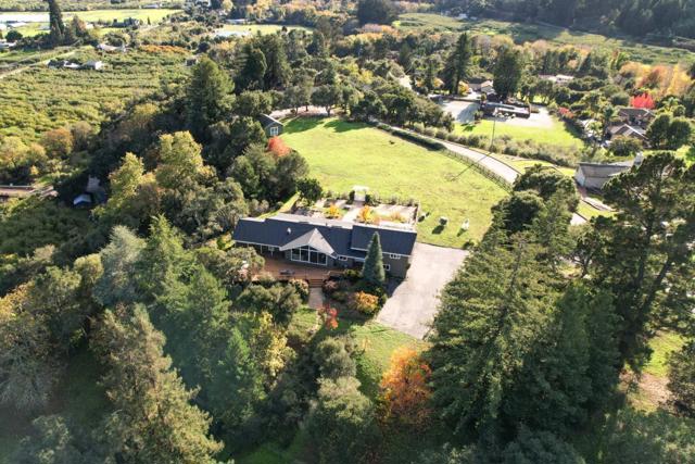 Step into this stunning 3,274 sf home in Corralitos, where every window frames breathtaking views of mountains & pastures. With 4 bdrms, 3 full BA, and 2 half BA, there's plenty of room for family & friends. Gather in the LR, where the white beam vaulted ceiling & fireplace create the perfect spot for relaxation. The home also features a separate FR with a ½ bath, as well as a office & workshop - ideal for work, crafts, or hobbies. Two primary suites w/ full bathrooms, three pantries, cedar-lined closets, a 3-car garage, & parking for 12+ vehicles ensure comfort & functionality, The 1,700 sq ft deck is perfect for quiet mornings w/ a view or lively weekend gatherings. Enjoy easy-maintenance landscaping, a fire pit under the stars, olive & fruit trees, garden beds w/ drip irrigation, & a pasture w/ its own irrigation system. A large 360 sq ft shed, hay storage, a new roof, & a backup generator add even more convenience & peace of mind. Life in Corralitos blends natural beauty w/ community charm - stroll through local wineries, visit the famous Corralitos Meat Market, or take advantage of optional membership to the nearby pool & tennis club. Here, every day feels like a retreat. This isn't just a home - it's a lifestyle that will effortlessly create memories to last a lifetime.
