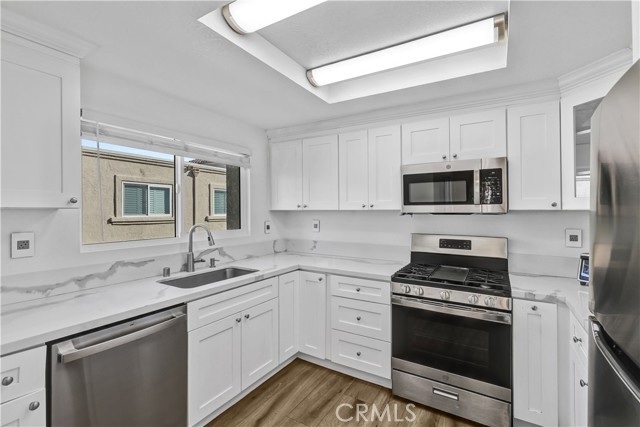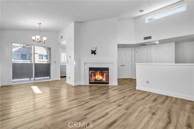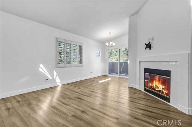 Discover this highly sought-after condo in the charming Vista Del Flores community of Lake Forest! This home features soaring vaulted ceilings, an open-concept layout, and a private balcony with serene greenbelt views. Enter from the ground-level 1-car garage with direct access and in-unit laundry. Upstairs, the sun-filled family room boasts plantation shutters, a tiled fireplace, and fresh vinyl flooring—plus, no one lives above or below for added tranquility. The kitchen impresses with stainless steel appliances, quartz countertops, and crisp white cabinetry. Retreat to the spacious master suite with double-door entry, mirrored closets with organizers, and an ensuite bathroom with tub/shower combo. Vista Del Flores offers beautifully maintained grounds, a sparkling pool, spa, park, and is close to top-rated schools, shopping, and dining.