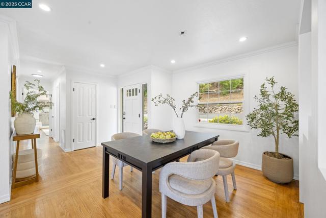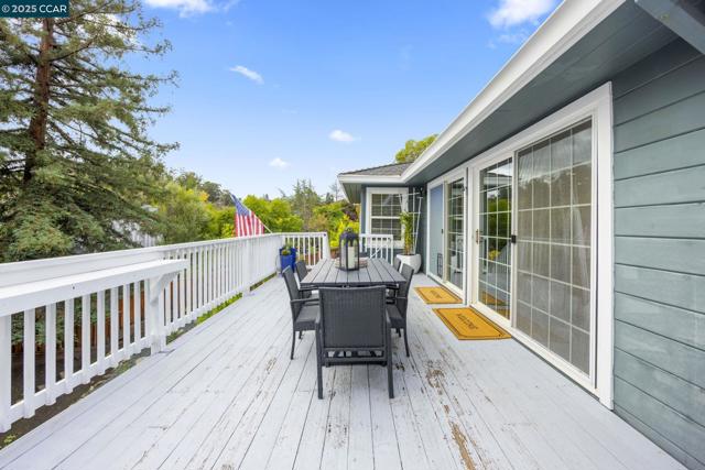 Experience the best of California living in this light-filled Parkmead home with sweeping Mt. Diablo views. Freshly painted interiors and fully remodeled bathrooms make it move-in ready. The open floor plan seamlessly connects the Kitchen—featuring granite and butcher block counters and stainless appliances—to the dining, living and spacious family room, all capturing stunning views off the back of the home. Step outside to an expansive deck overlooking a pool, play area and Mount Diablo on a private, terraced half-acre lot. A finished basement provides an additional 470 sqft of space for work or play. With recently refinished parking (for up to six cars!), easy access to downtown and freeways, and top-rated schools nearby, this property offers the ultimate indoor-outdoor lifestyle.