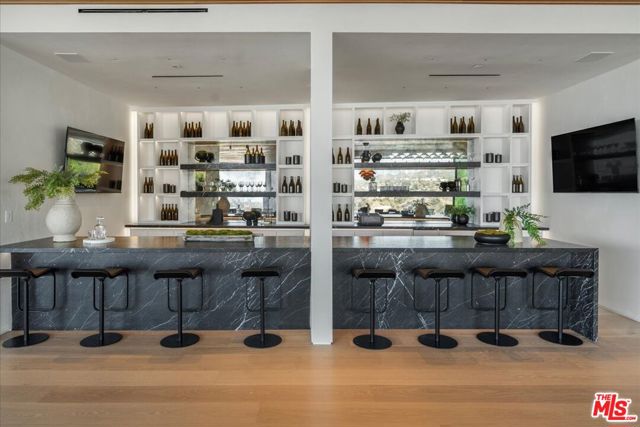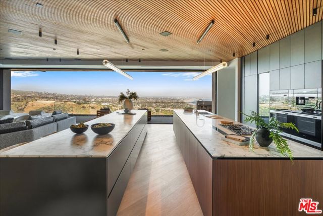 Set above Los Leones Canyon in Pacific Palisades with unobstructed views from the San Gabriel Mountains, Downtown LA to the Pacific Ocean. 766 Paseo Miramar presents a one-of-a-kind estate that balances architectural brilliance with sophisticated interior design. Spanning over 18,000 square feet with six all-ensuite bedrooms on an expansive 47,000-square-foot lot, this magnificent residence was meticulously designed by the renowned architect Tom Leishman with interiors by Michael Palumbo and constructed by the dynamic GME Development. Fully furnished, this home showcases an exquisite collection of custom-designed and imported finishes from Milan's most esteemed houses, including Molteni, Poliform, Modulnova, Misuraemme, Porada, Gallotti, Bisazza, Rugiano, CEA, Lapalma, Flos, and Vismara, to name a few. Even Herms Milan contributed to this estate's refined aesthetic, providing select interior finishes and the elegant powder room mirrors. The curated art collection, featuring works by Paul Gruner and Accardi, was thoughtfully chosen to complement the home's grandeur. Among this estate's many standout features is a divine Poliform kitchen, which encompasses a dedicated chef's kitchen primed for easy, elegant hosting. Throughout the residence, Venetian plaster adds a unique and luxurious touch, enhancing the elevated ambiance. This extraordinary estate boasts eight distinct HVAC zones, ensuring optimal comfort in every corner. A dedicated wellness center offers a sanctuary for rejuvenation, complete with a plunge pool, spa, and sauna, alongside a comprehensive private gym. A breathtaking primary suite spans over 2,500 square feet and features bespoke dual closets exquisitely designed and built by Molteni Milan. For the oenophile, a temperature-controlled wine cellar and an inviting bar create the perfect setting for entertaining. Also for entertaining, the expansive rooftop deck and the lower level ballroom which can be utilized for high-end private events. Outside, find a dramatic 90-foot infinity boomerang pool with an integrated spa that seemingly melts into the horizon, and far-reaching vistas that capture the surrounding canyons and coastline beyond. These are, without a doubt, some of the area's most spectacular, unobstructed views. Rooted in resilience, 766 Paseo Miramar remained intact through the fires that impacted the area. Completed in 2025, this estate presents an opportunity to own in a place shaped by both beauty and resilience.