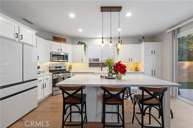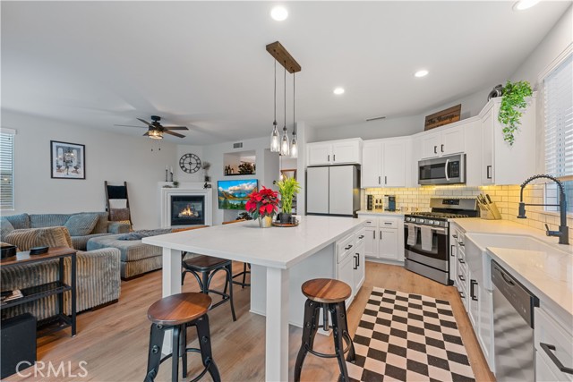 Welcome to this beautifully updated 3-bedroom + loft Northlake home, perfectly situated in the heart of Castaic with no Mello-Roos and a long list of recent upgrades. Light, bright, and truly move-in ready, this home offers modern finishes throughout and a flexible floorplan that easily adapts to your lifestyle. Step inside to find new flooring and baseboards, fresh interior and exterior paint, updated light fixtures, light switches, and ceiling fans throughout. The remodeled kitchen features an extended oversized island, quartz counters, subway tile backsplash, upgraded cabinetry, and stainless steel appliances—ideal for cooking, gathering, and entertaining. The open family room includes a cozy fireplace and direct access to the backyard. Upstairs, a spacious loft with barn doors provides the perfect second living area, office, or could be converted to a 4th bedroom if desired. The primary suite offers high ceilings and an updated ensuite bathroom with a soaking tub, separate shower, and dual sinks. Two additional bedrooms and a full bath complete the upper level. The backyard is low-maintenance and private, featuring brand-new artificial turf in both the front and back yard, offering year-round green space with minimal upkeep. Major system upgrades include: • New roof underlayment • New HVAC system + new A/C condenser • New water heater • New slider door • New windows in the primary bathroom The attached two-car garage is a standout with epoxy floors, its own garage A/C, and a garage utility sink—perfect for hobbies, gym use, or extra workspace. Located close to the Northlake amenities, including the community pool, clubhouse, and playground, and minutes from freeway access, Castaic Lake, schools, and shopping. This is an exceptional, turnkey home in a highly desirable neighborhood—don’t miss the chance to make it yours!
