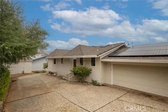 Wake up to shimmering Lake Oroville views from nearly every room in this beautifully light-filled home. Sunlight pours through expansive windows, creating a warm and uplifting atmosphere from the moment you start your day. At the heart of the home is a spacious, chef-ready kitchen offering abundant workspace, generous storage, and stunning panoramic views that make cooking and entertaining an absolute pleasure. The vaulted wood beam ceiling and open floor plan enhance the home's airy feel, leading seamlessly to a large primary suite and a total of three bedrooms and two and a half bathrooms across 1,840 sq ft of comfortable, thoughtfully designed living space. Added conveniences include owned solar and ample parking. Set just moments from the water's edge, this property places outdoor recreation at your doorstep. Hike scenic trails, bike winding paths, fish in pristine waters, or launch your boat for a day on the lake. Everyday essentials are close by as well, with Highway 70 just 15 minutes away and Oroville Hospital only 10 minutes from home. This exceptional lakeside residence is your invitation to experience the very best of Lake Oroville living!