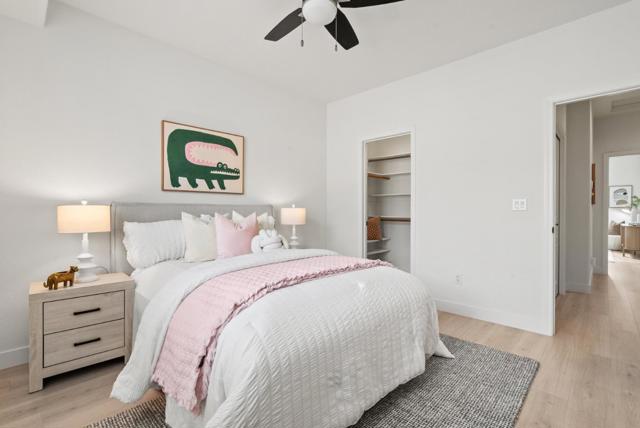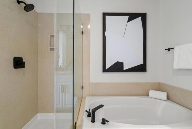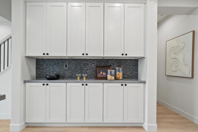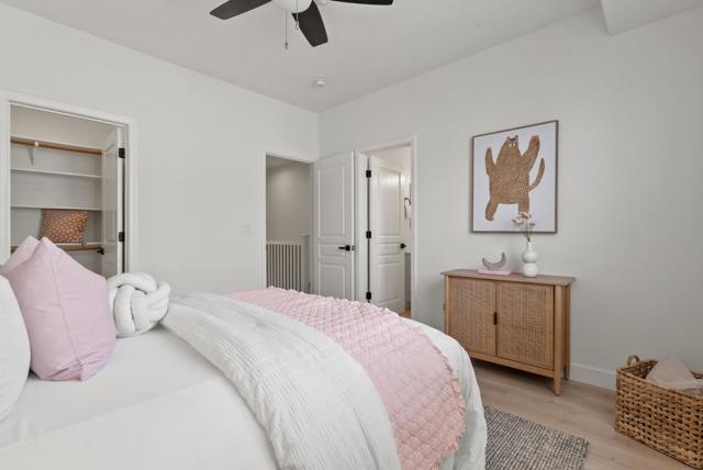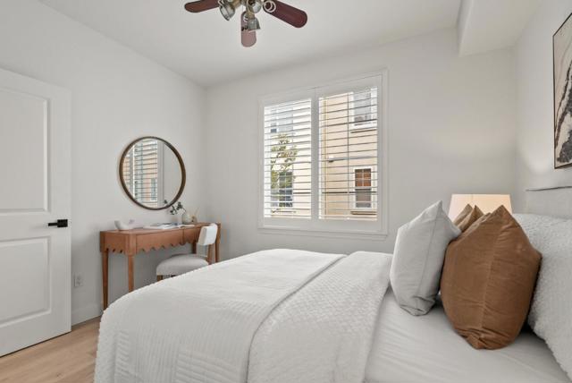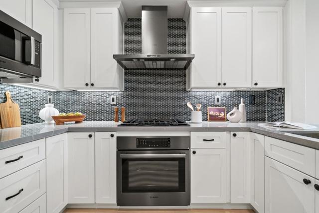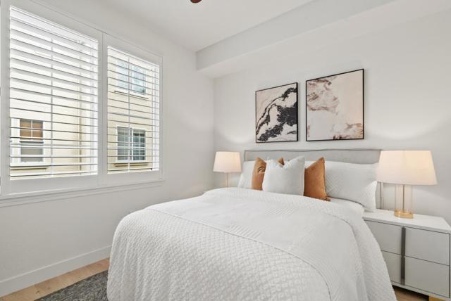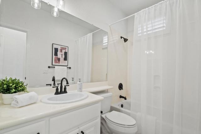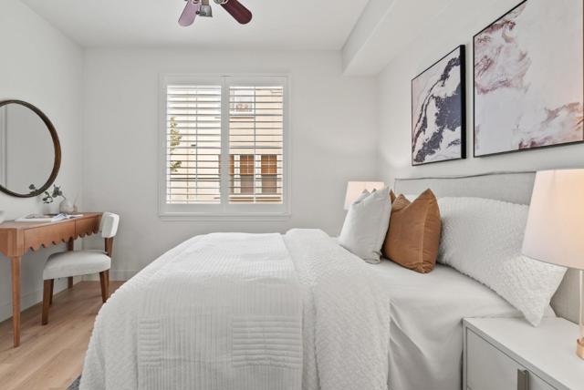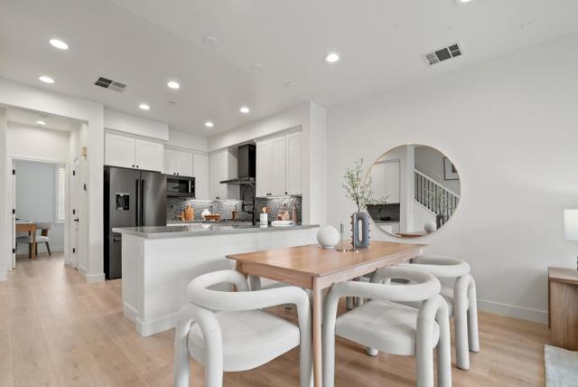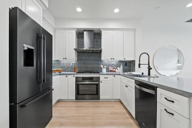 Rarely does a Rivermark home like this come on the market a modern retreat where every bedroom has its own full bath, ideal for roommates, in-laws, or multigenerational living. Sunlight fills the open living and dining area, highlighting beautiful new laminate floors! The completely remodeled chefs kitchen features custom cabinetry, Quartz countertops, a mosaic backsplash, and Bosch black stainless steel appliances for both elegance and performance. A main-level bedroom and bath offer flexible space for guests or a home office, while upstairs, the primary suite delivers a spa-like escape with dual sinks, soaking tub, and frameless glass shower. Modern touches such as black-finish hardware, smart thermostats, and multi-zone AC ensure comfort and sophistication throughout. Steps from parks, trails, Rivermark Plaza, and Silicon Valley employers, this home combines rare design, luxurious finishes, and an unbeatable location.
