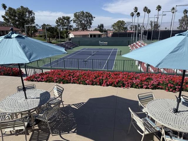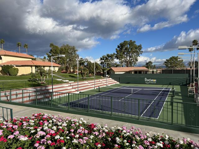 This is one of the very finest and most completely remodeled condos located in Deep Canyon Tennis Club. Take a look at the photos to enjoy the beauty and function of the interior. Browse through the pictures of the many wonderful Deep Canyon amenities of 12 tennis, 6 Pickleball courts, 12 pools, 4 hot tubs, golf putting and chipping greens and Bocce. The condo features 2 bedrooms with 2 baths, both with walk-in showers. The main living area graciously combines living room, office, dining area and kitchen to a marvelously workable and ever so comfortable home. Step outside to a large patio to enjoy stunning mountain and city lights views. All appliances and many of the very tasteful owner furnishings and furniture pieces will be included. You really have to see this condo and discover the Deep Canyon Tennis Club grounds and many amenities to appreciate it all. Shown by appointment. See it at the Open House on Saturday, November 22 from 1 to 3 pm.