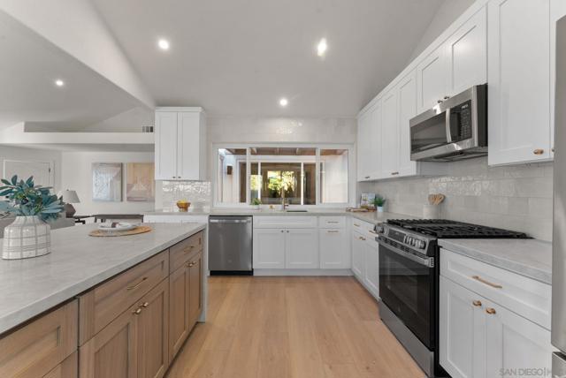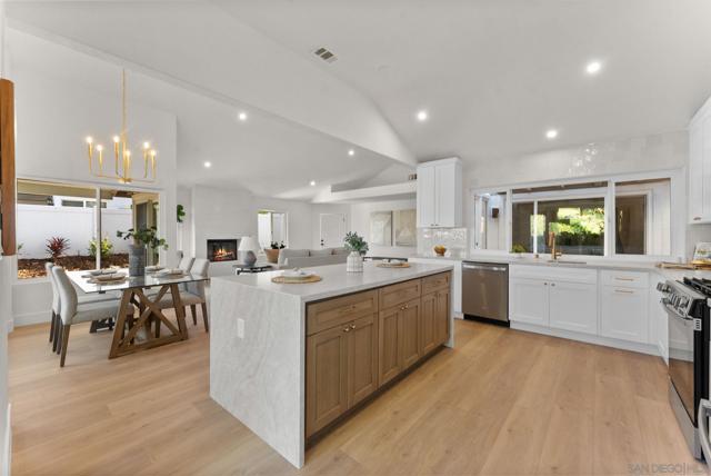 You are not getting older; you are getting better, and you deserve the amazing lifestyle that Ocean Hills Country Club offers to those 55+, with a 24-hour guard-gated community. Resort living at its best with an 18-hole golf course, pickleball and bocce courts, swimming pool and jacuzzi, a library, and a recreation facility with every club and event you can imagine. There is even an RV lot in the community. Charm is what you will be greeted with as you enter this beautifully updated St. Tropez single-story home. The vaulted ceilings and open concept invite you in. Your living room is equipped with a fireplace. New landscaping, newer double-pane windows, new garage door. For your peace of mind, the house has been repiped. The interior boasts fresh paint, new LVP flooring, and new light fixtures. The kitchen is a highlight with white shaker cabinets, quartz countertops, a waterfall island, and new stainless steel appliances. Need office space? You will find it here. There is an atrium that will become your peaceful retreat. The bathrooms are sparkling with new features. Enjoy your indoor laundry room. Move-in ready. Close to shopping, dining, and the beach.