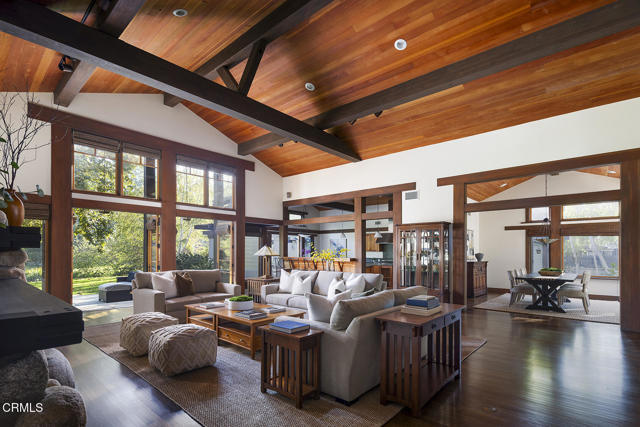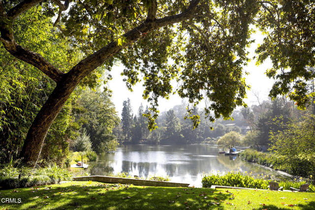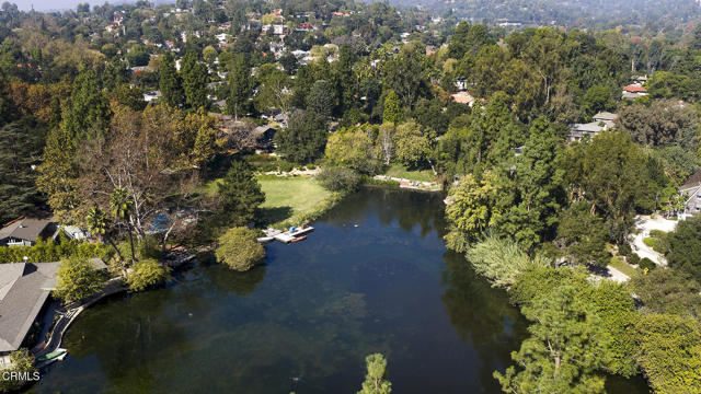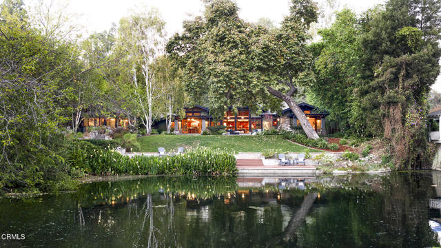 Nestled along the tranquil shores of Johnston Lake in Pasadena's prestigious south San Rafael neighborhood, this exceptional Craftsman estate, designed by noted architect Doug Ewing, is a rare architectural statement set amid nature's splendor. The home enjoys a magical over half-acre setting framed by towering oaks & graceful sycamores. Its secluded appeal is enhanced by a private dock and separate guest house. Designed to harmonize with its environment, the residence embraces the lake and landscape from every angle. The dramatic great room, crowned by 18 ft. wood beamed ceilings & anchored by a massive boulder fireplace. Woodwork, crafted by the artsian who restored the iconic Gamble House, reflects Pasadena's most storied traditons. Everywhere there is detail, intention and artistry. Opening through expansive doors to a full patio with sweeping and glittering lake views, the space is flooded with natural light. Designed for entertaining, the open floorplan flows into the eating areas offering opportunities for hosting large parties, private affairs or a wonderful family lifestyle. The kitchen is masterfully designed with a wonderful layout for the serious cook. The informal dining area opens onto a covered patio with a full lake view. The formal dining room exudes elegance.The primary suite is set apart for privacy, featuring a spa-like bath with jetted soaking tub, dual sinks & shower. The retreat area has a romantic fireplace and French doors opening to a peaceful patio that captures the serenity of the beautiful setting. On a separate wing, there are three additonal ensuite bedroom suites. Coupled with a separate den, featuring a fireplace and access to a front terrace, the home provides inviting spaces for work and relaxation. Across a beautiful lawn is a separate guest house with its own kitchen and bath. Tucked away under a tree canopy with a backdrop of the ever changing scenes on the lake, tt offers a private santuary and a peaceful retreat for guests. A meandering walkway leads over a little bridge to the grassy area know as ' The Meadow' and the HOA pool. This home is a legacy. It stands as a testament to Pasadena's architectural heritage, the artistry of Doug Ewing and the vision of a family who dared to dream of creating this special place on the shores of a hidden lake.