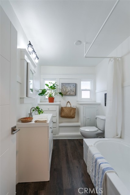 Charming and refreshed 3BD/2BA Spanish bungalow, blending classic character with thoughtful modern updates. Arched details, charming Spanish-style exterior, and a welcoming front porch set a classic first impression. Inside, an airy layout features refinished hardwood floors, updated lighting, and French doors leading to a versatile bonus room ideal for an office or den. Spacious and connected, the living and dining areas create an effortless space for gatherings or daily life. The remodeled kitchen is outfitted with shaker cabinetry, quartz countertops, stainless steel appliances, a walk-in pantry, and an adjacent laundry room. The oversized primary suite includes dual closets, room for a sitting area, and private exterior access—great for guests, multi-gen living, or a quiet retreat. Two additional bedrooms and a spacious hall bath complete the layout, offering flexibility for families, guests, or work-from-home needs. Tucked on a quiet, tree-lined street, the home balances privacy with quick access to the bike path and Metro K-Line. Located in the heart of Hyde Park, a historic South L.A. neighborhood anchored by Crenshaw Boulevard, the area is seeing a major revitalization through the Destination Crenshaw project. Local favorites like Dulan’s on Crenshaw and the weekly Crenshaw Farmers Market add character, while new spots like SÜPRMARKT reflect the neighborhood’s evolving energy.