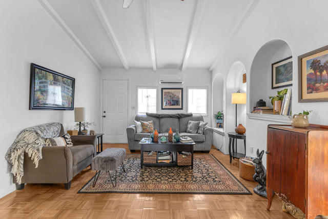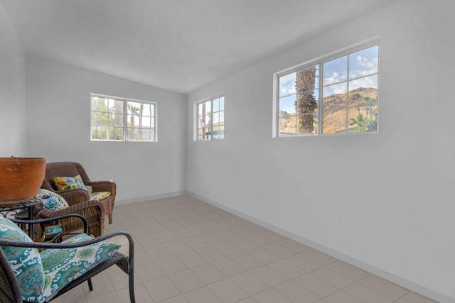 Near Araby hiking trail! This spacious double-wide home--with thoughtful additions creating a true triple-wide feel--offers charm, character, and incredible potential. The floor plan includes a formal entryway, large sunroom, den, and an extra bedroom, providing 3 bedrooms plus a versatile office space to accommodate a variety of lifestyles.Inside, you'll find beautiful parquet floors, custom bookcases, and a classic galley-style kitchen that adds warmth and personality. The dedicated laundry room is generously sized and offers enough space to add an additional bathroom if desired. The expansive sunroom is ideal for relaxing, entertaining, or taking in the peaceful surroundings.Located in Horizon Village Park (no age restrictions), this home sits just beneath the iconic Bob Hope estate in the scenic Palm Springs mountains, offering a serene backdrop while remaining close to shopping, dining, and everyday conveniences.While the property is ready for some updates, the price reflects this and presents a fantastic opportunity for buyers looking to customize their dream home. Additional features include a storage shed and a 1-car garage for added functionality.