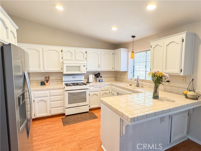 You'll love this home with a new roof!!!! This home offers 4-bedrooms, 1.75-bath home with a 2-car garage. It features a large formal living room, vaulted ceilings, and a lovely kitchen with a nook and built-in cabinetry. The interior has been freshly painted, and the bedrooms offer plenty of space, including a primary suite with a private bathroom and direct access to the backyard. Outside, enjoy a covered patio overlooking a pool and spa with newer pool equipment perfect for entertaining or relaxing.