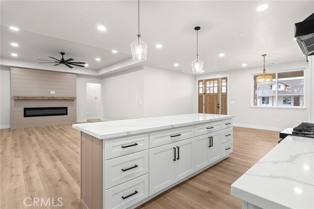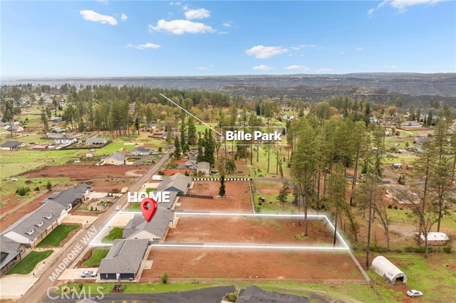 Brand-new, beautifully designed, and nestled in a true neighborhood setting—723 Madrone is the kind of home buyers dream of finding in Paradise. Located on the desirable west side of town, this home sits just down the street from the beloved Bille Park and offers an easy drive to Skyway for effortless commuting. This 4-bedroom, 2-bath, 2,173 sq. ft. home is part of a newly developed, stick-built street by American Dream Construction—six high-quality new builds that create a cohesive, community feel while protecting long-term value. Inside, you’ll find a thoughtfully designed split floor plan with bright, open living spaces. The dining room sits at the front of the home and flows seamlessly into the show-stopping kitchen—complete with a massive island, a Z-Line 6-burner gas range with hood vent, beautiful finishes, extensive storage, and a layout perfect for entertaining. The kitchen opens to the main living area, where large windows flood the home with natural light and a charming fireplace creates a warm focal point. The primary suite is a true retreat, offering a spacious bedroom and a spa-inspired bathroom with dual vanities and linen storage, a soaking tub, a stunning walk-in shower with dual shower heads, a private toilet room, and a generous walk-in closet. On the opposite side of the home, you’ll find three additional well-sized bedrooms and a beautifully designed hall bath. Just off the kitchen is a convenient pantry, and entering from the 3-car garage brings you through a thoughtfully planned mud room/laundry room—the perfect space to drop shoes, coats, and backpacks without cluttering your living areas. Outside, enjoy the curb appeal and carefully landscaped front yard, plus a 3-car garage and behind-the-gate RV parking with easy access to the expansive backyard. The backyard is a blank canvas—ready for a pool, garden, patio, or anything you can dream up. Built by American Dream Construction, one of Paradise’s most trusted local builders, this home is fully wildfire-prepared with 5 feet of defensible space, non-combustible materials, Class A roofing, ember-resistant Vulcan vents, and more. It also includes an extended 18-month fit & finish warranty and OWNED solar for energy efficiency and peace of mind. Make this stunning new build your home just in time for Christmas!