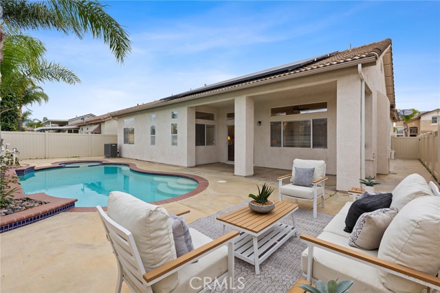 POOL & SPA HOME WITH GUEST HOUSE/CASITA! RARE FIND single story home with gated courtyard entry plus a separate casita, pool & spa, PAID SOLAR! Tesla solar system with 2 Tesla battery banks, LOW Tax & No HOA. This beautiful property has it all. Main house is 1611 +/- sq ft, 3 bedroom, 2 bath (1 bedroom no closet). Casita is approx 251 +/- sq ft Studio with full bath & cute courtyard. You will love the large living room in the main house with fireplace and built-ins with door leading out to patio/ pool & spa. Large kitchen with island, pantry & breakfast nook. Beautiful Primary suite with 2 closets, separate tub and shower & dual vanities. You will love the great flow of this property, plus the indoor laundry room. Everyone will love the pool and spa with plenty of room for lounge chairs. Paid solar system with 2 battery banks is a very valuable upgrade. Casita provides separate space for multi-generational living, or rent Casita for extra income. Hurry, this Rare Find won't last long!