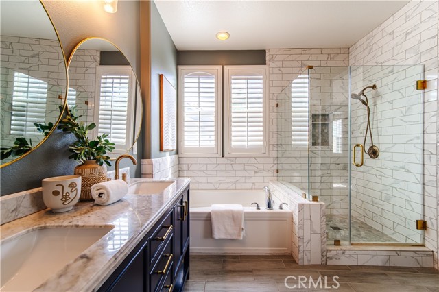Welcome home to your new beginnings with tranquil rolling-hill views! This turn-key, complete coastal décor home is like a true 4-bedroom home, where upstairs you have 3 bedrooms + a tech/loft/Office space and on the first-floor there are custom barn doors giving the option to open or close the game/office/play area. Upon entering the home, you are greeted into the loft by high-ceilings and newly remodeled and freshly painted bullnose stairs. The kitchen is equipped with stainless steel appliances, quartz counter top with backsplash, and farm style sink. The main living area features very gracious living and dining room areas, fireplace, and additional patio area which makes it ideal for entertaining with tile flooring throughout. Upstairs you will find the romantic master suite that is complete with a retreat area, large walk-in closet, dual vanity, and a separate tub and shower. All the bathrooms have marble countertops and the showers were updated with floor-to-ceiling tiles. On the second floor you have the laundry room with linen cabinets above and new bi-fold doors, two spacious secondary bedrooms that include a Jack and Jill bathroom, plenty of linen and storage cabinets, as well as the tech/loft space. This detached home was designed to maximize its stunning views from every room. Plantation shutters are throughout the home with stunning windows to provide a plethora of natural light. The outside space includes vinyl fencing for low maintenance and an enclosed patio perfect for entertaining or pets. Additional features that are included in this home are a water softener system and PAID-OFF SOLAR for lower utility bill. Relish all the amenities that Ladera Ranch has to offer, including Award-winning Capistrano Schools, HOA paid high speed internet access, swimming pools, spas, kiddie pools, water park, splash pads, gazebos, biking and hiking trails, skate park, sport complexes including tennis, soccer, baseball, and T-ball, clubhouses, playgrounds & more! This home is a Must See!