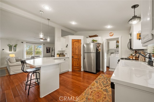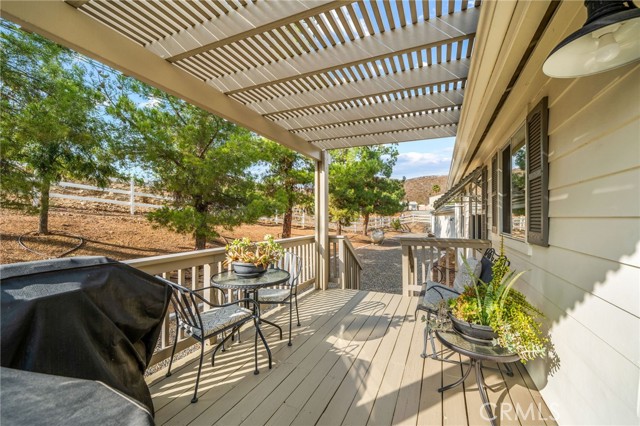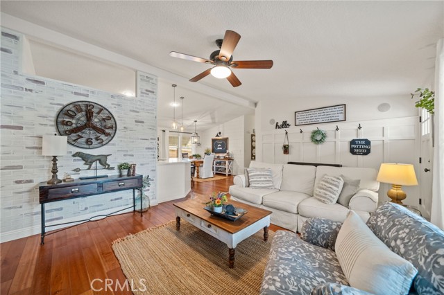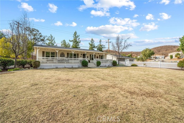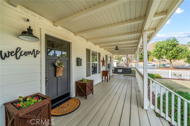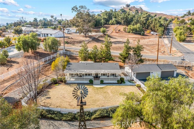 Pride of ownership shines in this meticulously maintained farmhouse style, permanent foundation home. The extra unique value in this opportunity with almost 2 acres and zoned R-A could possibly open up creative potential for buyers looking to expand with ADU or partial garage conversion, or adding structures etc. Custom upgrades include vaulted ceilings, real cherrywood flooring, recessed lighting, ceiling fans, shiplap and board-and-batten accents, elegant quartz kitchen countertops, and a costly 4-stage reverse osmosis filtration included. More upgrades include a 200-amp electrical panel, newer water heater, and an energy saving whole house fan. The walk-in pantry features motion lighting and extra outlets, and all appliances including refrigerator included in purchase. The utility sink in the separated laundry room off the kitchen adds convenience, and the washer and dryer are bonus gifts. Two of four bedrooms boast walk-in closets too! Step outside to an expansive front porch overlooking nearly 2 acres of beautifully cared-for land. The property also offers two oversized detached 2-car garages (one ultra-high for lifted vehicles) with storage, workspace, utility sinks, and separate sub panels, plus a soundproof insulated music room and office between them. All structures are complete with rain gutters for property care, security lighting on timers, and an electric gated front fence with indoor button-controlled access. Fencing includes 3-rail wood, picket, and cross-fenced areas with a secure dog run, and auto sprinklers and drip systems make gardening effortless. Outdoor highlights include a built-in rock fire pit, vintage windmill, fruit trees, and a charming walking bridge over the natural riverbed irrigation. This almost 2-acre property is zoned for horses and agriculture. Perfect country living perks, just minutes from stores and freeways. A true Oasis blending rural charm with city convenience.