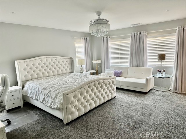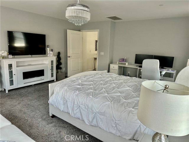 Welcome to this highly upgraded gorgeous home in the desired gated community of Westridge in Canyon Hills. This home offers 5 Bedrooms, 3 full Bathrooms, a HUGE loft, brand new quartz counter tops, custom white backsplash, premium chandelier ceiling fans in every room, whole house fan and PAID SOLAR! Brand new LEVOLOR 2.5-inch Cordless White Faux Wood throughout entire home! With over 2,800 sqft of living space you will have plenty of room to grow. You will enjoy a beautiful no maintenance BRAND-NEW backyard. The 16ft sliding door allows you to enjoy the outdoors on warm summer nights. This home has storage for days and also includes a 3-car tandem garage. The Primary Bedroom is like a dream with the updated granite countertops and white cabinets in the huge Primary Bathroom including a 9 x11 foot walk in closet with premium chandelier ceiling fan and custom blinds will make any fashionista happy! The laundry room is very ample with more storage and a deep sink for convenience. The community pool is stunning and heated during the spring months! Corner lot on very quiet street. This home is move in ready! Home is priced to sell quickly.
