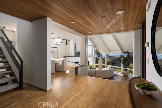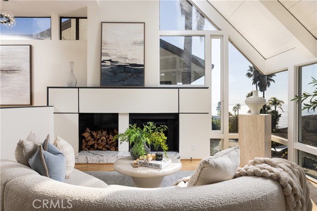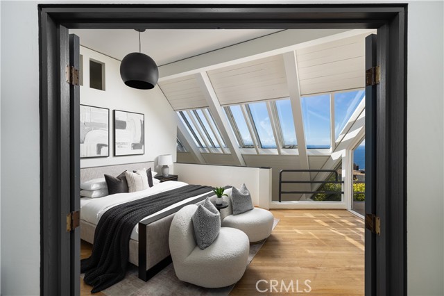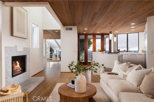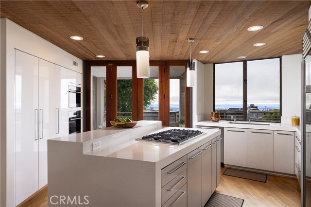 Modern Coastal Sanctuary with Ocean Views. Perched above the shimmering shoreline of Victoria Beach, this stunning Laguna Beach residence offers the perfect blend of contemporary design, comfort, and serenity. Nestled in the coveted Portafina neighborhood, this residence provides beautiful views of the Pacific, Catalina Island, and vibrant evening sunsets. Originally crafted by architect Timothy Wilkers, a student of the celebrated Chris Abel, this home reflects timeless California modernism, where glass, light, and natural materials come together in perfect balance. Enter through an inviting courtyard and walk into revealing sunlit interiors framed by walls of glass and high, airy ceilings. Open concept floor-plan from the designer kitchen to the dining and living areas. The gourmet kitchen features premium appliances, sleek cabinetry, and an oversized island ideal for gatherings. Step outside onto the expansive deck to take in the salty breeze and panoramic ocean backdrop. A guest suite with private courtyard access and a relaxing family room with fireplace, create flexible spaces for everyday living and unwinding. Upstairs, the primary suite captures the home’s full sense of tranquility, with skylights, a private ocean-view balcony, a spacious walk-in closet, and a spa-inspired bathroom with dual vanities. Two additional bedrooms share a beautifully updated bath, completing the upper level. Just moments from Laguna’s best beaches, scenic hiking trails, and the shops and restaurants of downtown, this property offers an exceptional coastal lifestyle, where modern design meets the relaxed rhythm of beachside living.