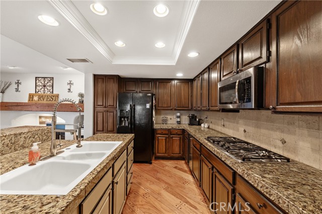 This stunning 5-bedroom Murrieta home delivers the best of Southern California living with low taxes, no HOA, gorgeous custom wood flooring, 3 fireplaces, sleek granite kitchen counters, and a spacious backyard overflowing with possibility. With an ideal family-friendly layout and stylish upgrades throughout, this home radiates warmth, comfort, and effortless charm from the moment you arrive. The welcoming walkway sets the tone, guiding you into soaring ceilings and a bright, open living room that instantly feels like home. The impressive kitchen boasts granite countertops, an earthy stone backsplash, a generous island with seating, and abundant cabinetry—perfect for culinary adventures or quick weekday meals. A custom fireplace adds cozy elegance to the dining area, creating a perfect space for gatherings. A convenient downstairs bedroom provides flexibility for guests, while upstairs you’ll discover four more spacious bedrooms, including a luxurious primary suite with a walk-in closet and an oversized bath featuring a walk-in shower and soaking tub. Step outside to your private outdoor oasis—an expansive backyard with lawn turf, a covered patio, and a welcoming fire pit, ready for relaxation, play, or future customization. Ideally situated near top-rated schools, shopping, parks, and easy freeway access, this Murrieta gem offers not just a beautiful home—but an elevated lifestyle waiting to be embraced.