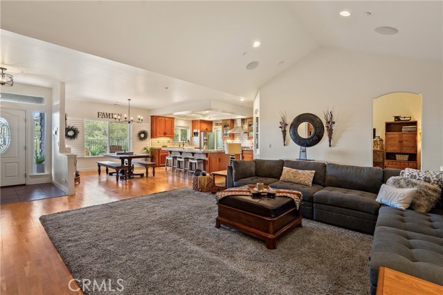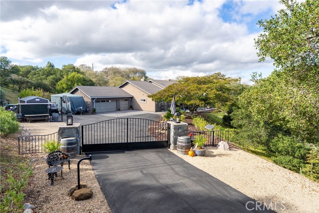 Welcome to this exceptional 3 bedroom, 2 bathroom executive home offering 2363 sf of refined living space on two separate APNs totaling 3.76 acres in the prestigious 3F Meadows community. As you approach through the automatic gated entrance, the property unfolds beautifully, with the home perfectly perched atop the hill to capture sweeping, unobstructed views. A charming east-facing, covered patio welcomes you—an ideal spot to enjoy peaceful mornings. Step inside and you’re greeted by rich hardwood floors that flow through much of the main living area. The spacious living room impresses with vaulted ceilings, built-in cherry cabinetry and a cozy gas fireplace. The dining area is enhanced by a large picture window that frames the stunning vistas beyond. The gourmet kitchen is a true standout, featuring new granite countertops, a stylish tiled backsplash and ample space to entertain with ease. Retreat to the massive primary suite, thoughtfully designed as a calming sanctuary. It offers plantation shutters, a French door to the backyard and a gas fireplace for added ambiance. The luxurious ensuite bath includes a soaking tub, a walk-in shower with dual shower heads and a generous walk-in closet complete with organizers. Two guest bedrooms and a full guest bath are privately situated on the opposite side of the home. Outside, you’ll find an expansive covered patio with lighting and wiring for sound—perfect for year-round enjoyment. The serene setting includes a tranquil water feature, an outdoor fireplace and a large deck ideal for relaxing or entertaining. Additional amenities include RV parking with full hookups and an enclosed chicken coop. Below the home, you’ll find an additional parcel of land with its own separate entrance. It’s currently used as horse pasture but could easily accommodate 4H projects or other four-legged friends. If you need more space, the area also offers the potential to build a home, workshop or whatever suits your needs. Please check with the City of Atascadero for details. This spectacular property blends comfort, privacy and scenic beauty—come experience all that 3F Meadows has to offer. Please review the Virtual Tour for additional photos and information.