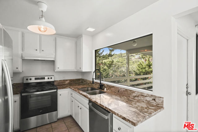 Enjoy serene views of the Santa Monica Mountains from this charming home in the El Nido neighborhood of Corral Canyon. The open floor plan upon entry is a great spot for gatherings with a spacious living room and adjoining kitchen. Upstairs you will find two bedrooms including the primary suite with a fireplace and a private deck to enjoy the colorful sunsets over the mountains. The lower level of the home consists of the third bedroom, bathroom, laundry, and a two car garage. Rounding out the features is a small flat and fenced backyard that is perfect for entertaining in the shade of the mature pine trees.