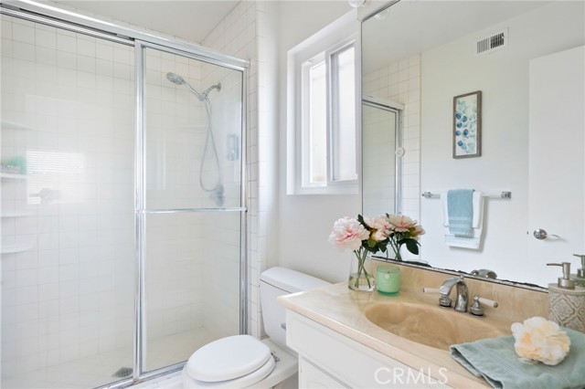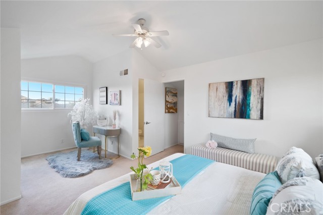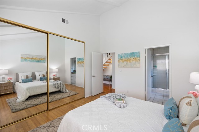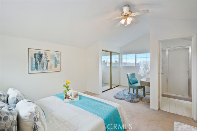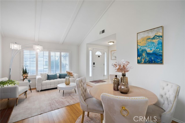 Ideal Interior Street Location: Beautiful two-story home offering 3 bedrooms and 3 bathrooms with showers. The floor plan is designed with a primary suite on each level. This spacious 1,460 square foot features an open and bright floor plan designed with vaulted ceilings on both levels, and hardwood flooring throughout the main level. Upon entry, you’re welcomed by a formal foyer leading to the formal living and dining rooms, both enhanced by high-volume ceilings, a cozy wood-burning fireplace and plantation shutters. The separate family room is also highlighted with vaulted ceilings and upgraded French doors to the backyard. The bright kitchen includes upgraded cabinetry and countertops, recessed lighting and beautiful views of the relaxing pool and spa. Two of the bedrooms are on the main level, including a primary suite with an en-suite bath. The additional primary suite with private bath is on the second level. This suite is highlighted with vaulted ceilings. Additional highlights includes soft water and solar panels with a 25-year panel warranty and lifetime installation warranty – and fully owned. Enjoy a spacious backyard with a refreshing pool and spa, plus fresh landscaping in both the front and back yards. This excellent location is just a short walk to Central Park - one of Orange County’s gems - featuring basketball courts, tennis courts, a softball field, playground, and gazebo. Highly desirable La Palma School District includes access to nationally recognized Oxford Academy.