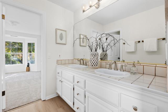 Immaculate Custom Home on Over an Acre in a Gated Setting Discover this stunning residence nestled on a private, park-like 1+ acre corner lot with mature trees and a fully fenced exterior. The open and sun-filled floor plan features a spacious living room, a cozy family room with a brick fireplace, and a formal dining area complemented by a kitchen dinette. Downstairs offers two generous bedrooms, while the expansive primary suite occupies the upper level for ultimate privacy, featuring a giant wraparound closet and fireplace. Freshly painted interiors and brand-new carpet make this home move-in ready and waiting for your personal touch. Enjoy exceptional outdoor living with multiple spaces designed for gatherings, entertaining, and relaxing under the California sky. This property combines comfort, elegance, and versatility—perfect for creating your dream lifestyle.