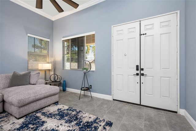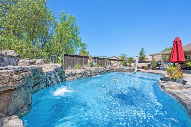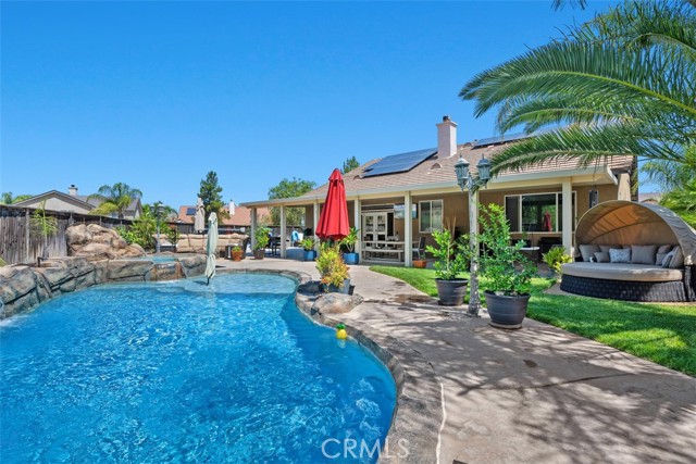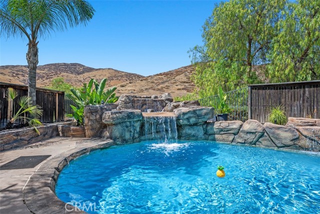 Welcome to an entertainer’s paradise nestled in a serene neighborhood with scenic mountain views. This beautifully maintained single-story residence offers the perfect blend of comfort, style, and resort-inspired outdoor living – with no HOA. This three-bedroom, two-bathroom home with a three-car garage also features a versatile fourth room, perfect for a guest bedroom, home office, playroom, or anything your heart desires. The flexible floor plan is designed to meet the needs of modern living while maintaining a warm and inviting atmosphere. Step inside to an open-concept layout filled with natural light, spacious living areas, and tasteful modern upgrades throughout. Whether you're hosting gatherings or enjoying peaceful evenings at home, this inviting design accommodates every lifestyle with ease. The showstopping backyard is a private oasis, featuring a sparkling saltwater heated pool with dual cascading waterfalls, a built-in spa, and tranquil mountain views. The expansive covered patio spans the entire length of the home, ideal for seamless indoor-outdoor living. Gather around the built-in fire pit under the stars, grill in the designated BBQ area, or unwind in the professionally landscaped yard complete with a thoughtfully designed garden path along the side. Sustainability and savings go hand in hand with solar panels and a Tesla Powerwall, offering energy-efficient living year-round. Lovingly cared for and move-in ready, this home effortlessly combines everyday comfort with luxury living—inside and out.