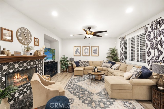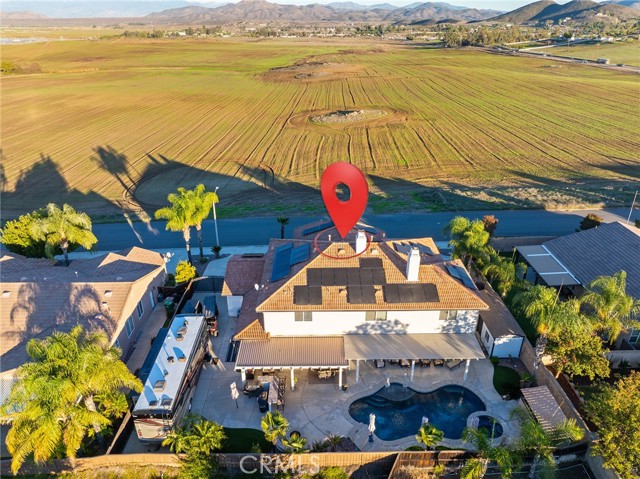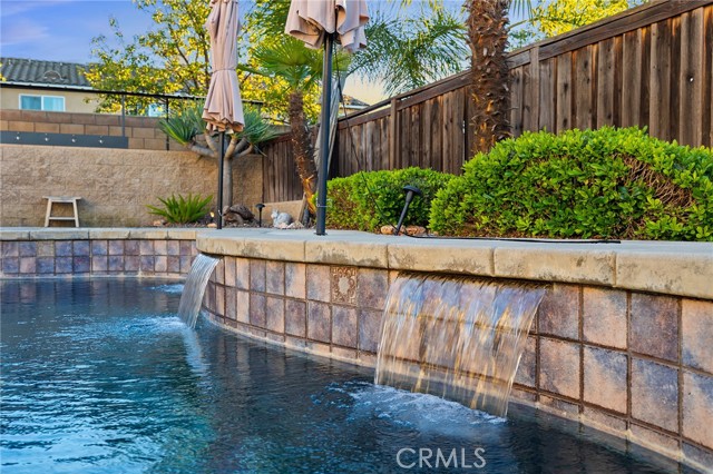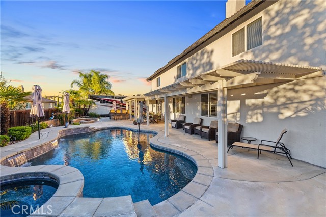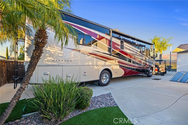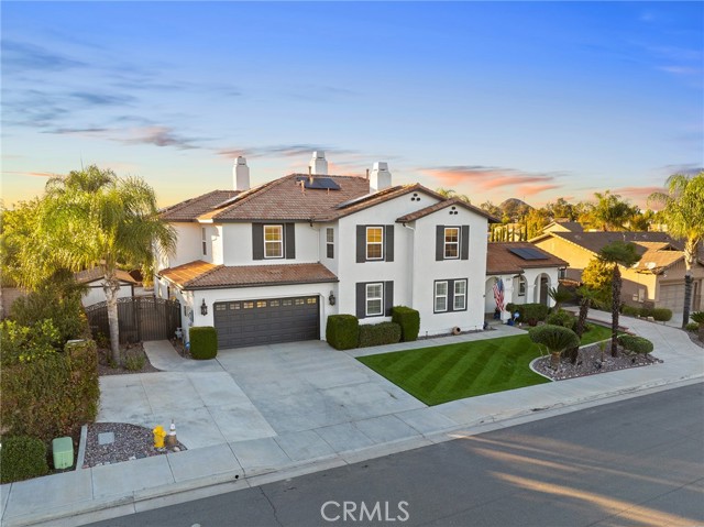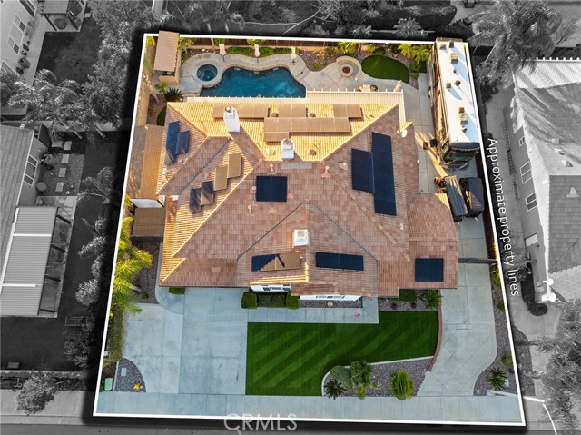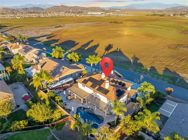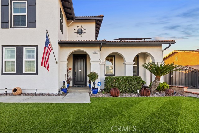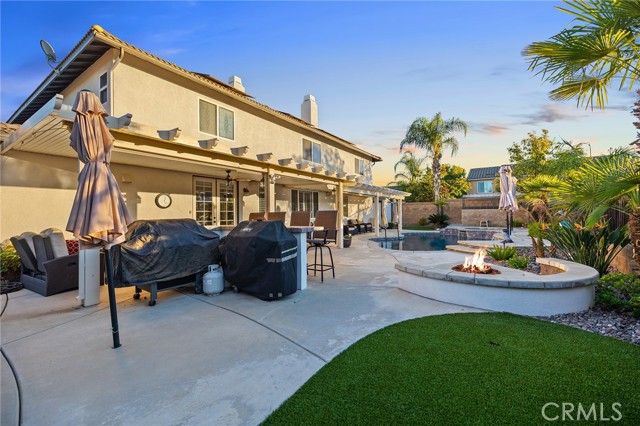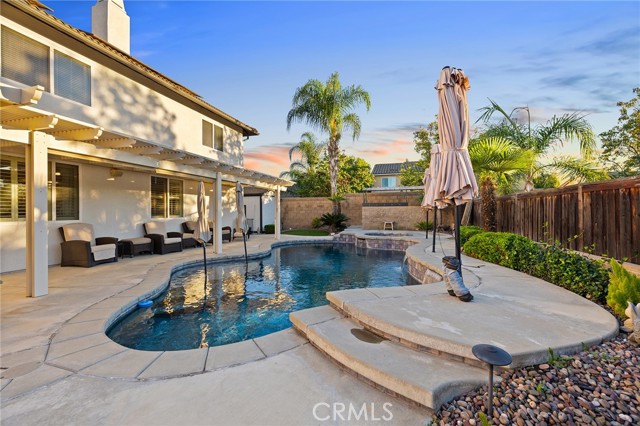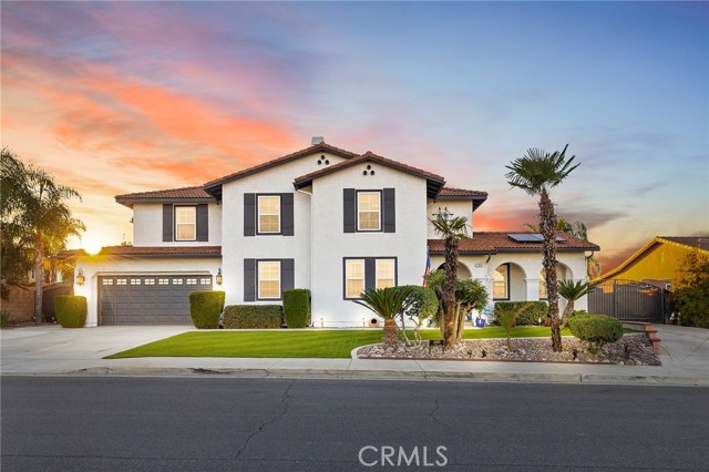 This is the unicorn property you've been waiting for – a spectacular move-in ready 5-bedroom, 4-bathroom pool and spa estate with RV parking on a generous nearly 11,000 square foot lot with NO HOA! Sprawling across nearly 4,000 square feet of luxurious living space, this exceptional home features a highly versatile floor plan perfect for comfortable multigenerational living with one oversized bedroom and full bathroom downstairs, plus a den/office that could easily be converted to a 6th bedroom. Freshly painted inside and out, enter through a grand foyer with soaring vaulted ceilings flanked by an elegant formal dining room and a stunning formal living room with cozy fireplace, currently being used as an office. The gourmet kitchen showcases beautiful rich wood cabinetry, convenient double ovens, gas cooktop, an oversized island with gorgeous decorative backsplash, functional butler's pantry with mini fridge and sink, plus a nice-sized pantry, all overlooking the expansive family room featuring a recently remodeled designer fireplace. A dramatic sweeping staircase with striking wrought iron balusters leads to three additional generously sized bedrooms upstairs, one of which is an ensuite with full bathroom, plus another full bathroom and the magnificent primary suite. The luxurious primary suite boasts a huge attached flex/sitting room with convenient wet bar and mini fridge, complemented by a stunning dual-sided fireplace shared between the serene bedroom and versatile sitting area. The spa-like primary bath offers a spacious separate shower, relaxing soaking tub, elegant dual vanities, and his-and-her walk-in closets. The entertainer's dream backyard provides complete privacy and features a sparkling inviting pool and spa, durable aluminum wood patio cover, built-in BBQ area, ambient firepit, and spacious storage shed. The front and backyard showcase beautiful drought-resistant artificial turf that saves significantly on water bills while maintaining pristine curb appeal year-round. Additional impressive highlights include RV parking with hookups, generous toy parking, energy-efficient solar system, whole-house water softener, elegant plantation shutters throughout the main level, and abundant storage throughout. Perfectly positioned with convenient access to freeways, shopping, schools, and parks, this one-of-a-kind sanctuary offers the ideal blend of luxury, functionality, and location!