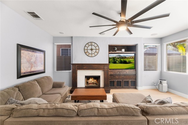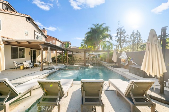 Experience elevated living in this beautifully refined 4 bed/3 bath residence tucked within the prestigious Tuscany Hills community. Thoughtful upgrades and timeless finishes create a luxurious yet comfortable atmosphere throughout the home. Newer vinyl plank flooring enhances the main living areas, while the refreshed kitchen features updated counters, contemporary fixtures, and modern appliances. The bathrooms have been tastefully upgraded, and additional enhancements—including a whole-house fan, newer water heater, exterior paint, and vinyl fencing with expanded concrete—add both style and convenience. Designed for relaxation and entertaining, the backyard offers a private resort-like escape with an Aqua Blue Pebble Sheen pool with ozone system, complemented by a beautifully reimagined landscape. PAID SOLAR with LG battery backup adds exceptional value and long-term energy efficiency. Residents enjoy access to Tuscany Hills’ renowned amenities: a resort clubhouse, pool and spa, fitness center, tennis courts, sports courts, and scenic walking paths. Ideally situated near Tuscany Hills Elementary, local shopping and dining, Canyon Hills Marketplace, Costco, and convenient 15 freeway access. A truly exceptional opportunity to own a tastefully upgraded, energy-efficient home in one of Lake Elsinore’s premier hillside communities.