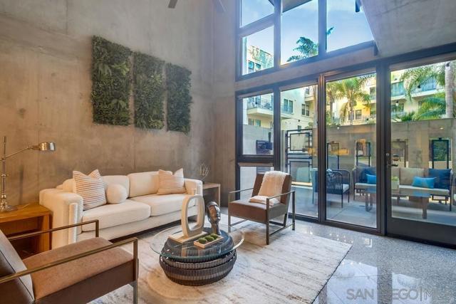 Experience the vibrant heart of Little Italy from this stunning 2-story modern loft located in the iconic DOMA building on Kettner Blvd. This beautifully designed home features vaulted ceilings, a sleek open-concept floor plan, and a spacious private patio — perfect for relaxing or entertaining. Step inside through the contemporary lobby or enjoy the convenience of a secure courtyard entrance, ideal for dog owners. The DOMA building even includes its own private dog run! Just one block from the lively weekly farmers market, scenic Waterfront Park, and some of San Diego’s best dining and culture — this is urban living at its finest.