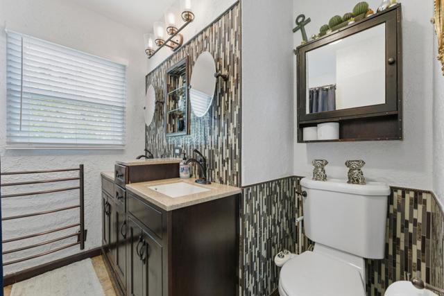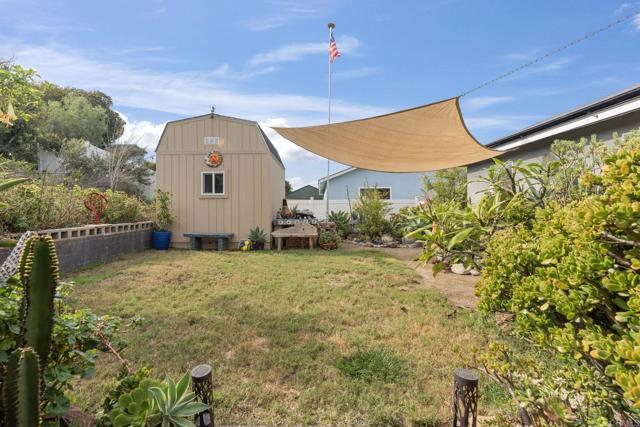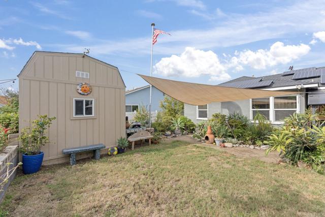 Calling all nature enthusiasts! Welcome to 5725 Dream St — an upgraded, move in ready home, at the end of a quiet cul-de-sac with plenty of open parking and downtown skyline views, PAID OFF SOLAR, A NEW ROOF and an enchanting peaceful garden oasis. Step inside to a bright, inviting living space with dual-pane windows, LED lighting, custom blinds, ceiling fans in each bedroom, plus Central A/C and an upgraded 200-amp electrical panel with an EV charging station. The kitchen features a massive refrigerator + freezer for the at home chef. Enjoy added comfort with a tankless water heater, and beautifully retiled bathrooms, including a relaxing jetted tub in the primary suite. The true showstopper is the enchanting, mature garden lovingly cultivated over many years—featuring many exotic flowers that attract hummingbirds and butterflies. You will find many fruit bearing trees such as banana, apple, pluot, aprium, orange, loquat, and a thriving pomegranate tree that yields around 75 lbs of fruit annually. Complete with an enclosed garden, your vegetables will be protected year round. The crowned jewel is the ultra rare Rainbow Eucalyptus, which is a true statement and a centerpiece to your private backyard. Enjoy each moment with a cup of coffee and relax by your outdoor fountain. Sitting on a spacious 7,900 sq ft lot, this yard offers plenty of useable space, room to add an ADU, and a 2-story 12×10 Tuff Shed, which can be used for storage or an office, complete with its own private entrance. Located in the peaceful setting of Valencia Park with easy access to local amenities and hiking trails through the canyon. You are approximately 10 minutes from downtown and Chollas Lake, 15 minutes from the beach and 20 minutes to Mexico. This home blends comfort, upgrades, and serenity… a dream come true.