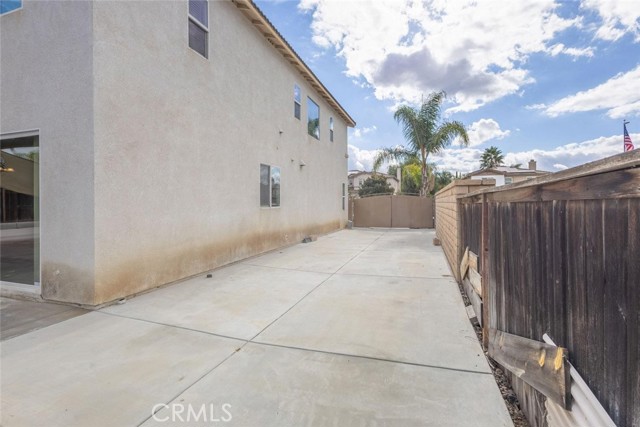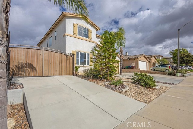 Discover the perfect blend of space, comfort, and incredible functionality in this beautifully maintained 3 bedroom, 2.5-bath home offering 2,243 sq. ft. of living space on a 7,841 sq. ft. lot, located in a highly desired Menifee neighborhood with great schools, plenty of nearby shopping, and MSJC just down the street within walking distance. This property offers TRUE RV parking on BOTH sides of the home with NO HOA, giving you unlimited flexibility for toys including RV's, boats, vehicles, & storage. The left side features approx. 14.5 ft. X 61 ft. of GATED parking where the seller previously stored a large trailer & a boat, while the right side provides approx. 8 ft. X 50 ft. of additional parking that can fit several cars or another boat. The backyard is spacious with room to add a pool and includes a large shed with electricity located at the end of the concrete pad- perfect for storage or a workshop. Inside, you'll find a huge family room with a fireplace, a separate den, and a large open kitchen ideal for gatherings. All bedrooms are upstairs along with a convenient office nook and laundry room. The primary suite is oversized and features a private balcony where you can enjoy your morning coffee or watch Menifee's Fourth of July fireworks, plus a large walk-in closet and a bathroom with separate soaking tub, shower, and dual vanities. Additional features include luxury vinyl plank flooring throughout much of the home, a beautiful wrought-iron gated entry for added security, low-maintenance front landscaping with rock, concrete, and drought-friendly shrubs, and a NEW HVAC system and water heater that was just replaced in 2022 giving you peace of mind. Refrigerator, new washer, and dryer all come with the home as well! This home offers incredible space, storage, versatility and is priced to sell at $575,000!!
