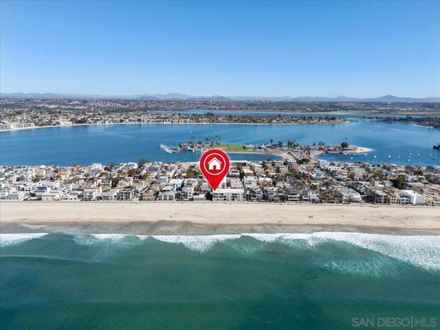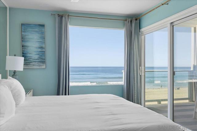 Pristine beachfront corner penthouse grants exceptional ocean views, from sunrise to sunset. Take advantage of this prime location with daily strolls on the boardwalk, year round dips in the ocean, and walkability to the cafes, beach shops, restaurants and attractions that only Mission Beach has to offer. With an open concept layout, you can enjoy the ocean breeze and nonstop views from the comfort of your own home. The great room opens through sliding glass doors to your oceanfront, private deck, where you can take in the scenery from the South Mission jetty to Crystal Pier. Besides ocean views, the kitchen also features marble countertops, gas stove, and an eat-at counter. Primary bedroom opens to your spectacular private deck, and you don't even need to get out of bed to enjoy the view. Numerous windows provide an abundance of natural lighting, plus the ease of recessed lighting with dimmers throughout. Separate vanity off of the second bedroom. 2 full sized, assigned parking spaces, and laundry on site. Don't miss your chance to live the Southern California dream all year long!