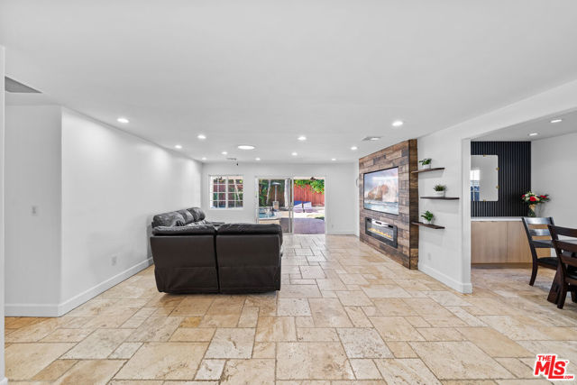 Beautifully updated Woodland Hills single story with modern upgrades, smart features, and a resort style backyard. This four bedroom three bath home blends comfort, style, and functionality in a quiet residential setting. Step inside to an open and inviting layout with a central family room that flows seamlessly into the brand new chef's kitchen complete with new cabinetry, countertops, and appliances. The dining room has also been fully redone and provides the perfect setting for hosting family and friends. Fresh paint throughout the interior and exterior, new flooring in all bedrooms, and updated lighting give the home a clean, modern feel. The home offers a desirable split floor plan. On the north side of the property, there is a private one-bedroom suite with its own bathroom, ideal for teenagers, guests, in-laws, or extended family. It can also be easily converted into an ADU, as a separate electrical panel and dedicated sewer line are already in place. On the opposite side of the home, you will find the remaining bedrooms and baths, including the spacious primary suite with a walk in closet and a newly renovated ensuite bathroom. The backyard is a true standout with an automated salt water pool and raised spa, and smart controls equipment. A heated pergola with built in lighting, audio, and video creates a resort style outdoor living experience. The property also includes a gated drive through driveway with stamped concrete, enclosed carport, and multiple fruit and shade trees. Additional improvements include OWNED solar, automated light switches, a whole house fan, fiber internet, and smart home touches throughout. Close to the Calabasas Commons, Westfield Topanga, hiking trails, and a short drive to the beaches, this home offers comfort, convenience, and tremendous value. Turnkey, upgraded, and full of potential. A must see.