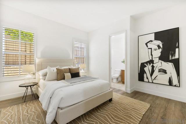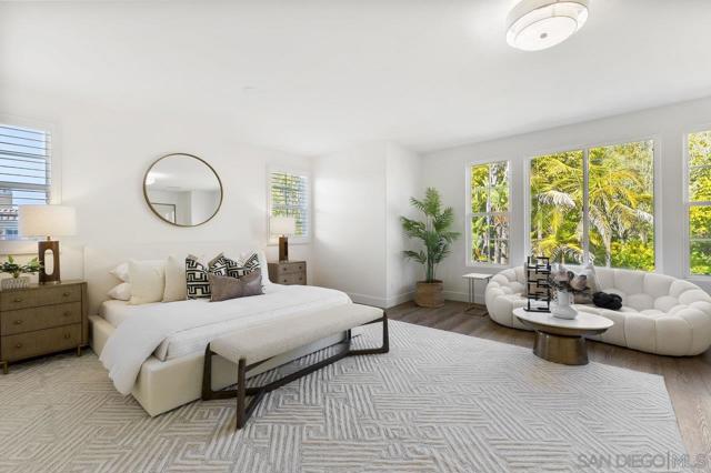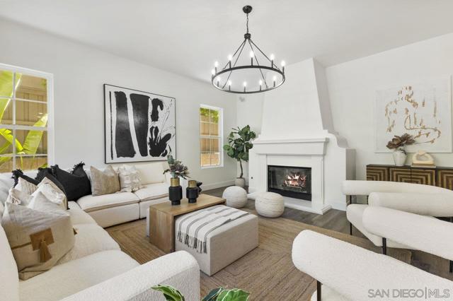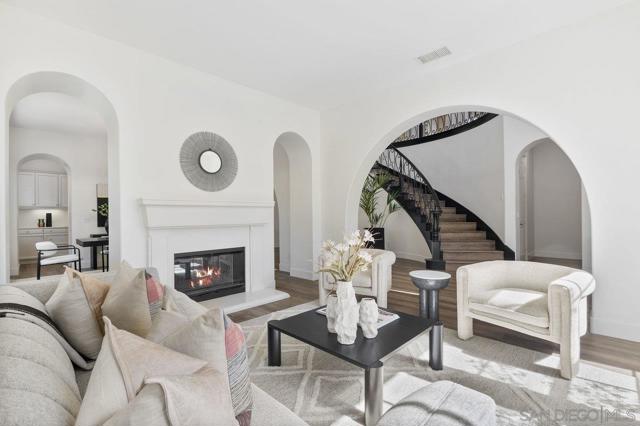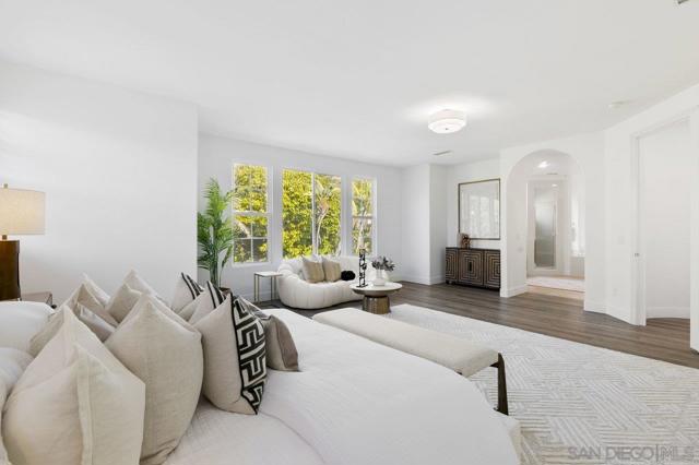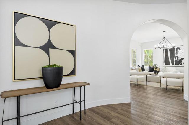 Nestled in the exclusive gated community of Torrey Woods Estates this exceptional home offers the unique advantage of choice between two top-rated elementary schools: Ocean Air or Torrey Hills. Gated courtyard entry invites you into a freshly painted home with designer finishes. Grand formal entry with cathedral ceilings open to formal living and dining rooms with dual-sided fireplace. New luxury vinyl plank flooring throughout, custom lighting, and an abundance of natural light throughout. The chef’s kitchen featuring an oversized island with prep sink, pendant lighting, Quartz countertops, a spacious eat-in area, walk-in pantry, built-in desk, premium Viking appliances including a 6-burner cooktop with hood and professional-grade refrigerator—all seamlessly flowing into the family room with fireplace. Private backyard landscaped with gorgeous, mature greenery and low-maintenance turf—perfect for relaxing or entertaining. First floor offers a full en-suite bedroom, custom wine cellar, powder room with new vanity plus a versatile bonus room perfect as an office or playroom. Upstairs, you'll find a massive bonus room with custom French glass doors, offering additional space for a second office, media room, or lounge. Expansive primary suite features a generous sitting area and a spa-inspired bathroom with dual vanities, soaking tub, walk-in shower, bidet toilet, and large walk-in closet. Two additional beds, a full bath, and a spacious laundry room with linen storage complete the second floor. Additional upgrades include EV car charger, smart locks & Nest thermostats, updated kitchen countertops, sinks, and fixtures, new flooring, paint, lighting, turf and professional landscaping. All this in a premier location just minutes from Torrey Pines Beach, One Paseo, shopping, dining, and within the top-rated Del Mar Union and San Dieguito Union High School Districts. Don’t miss the opportunity to call this extraordinary home yours!