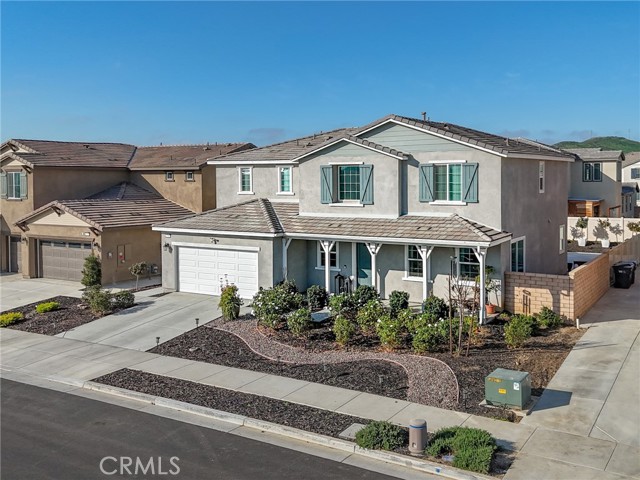 PAID OFF SOLAR | LARGE BACKYARD | NO FRONT NEIGHBORS - 5. FULL BEDROOMS + LARGE SEPARATE DINNING ROOM + UPSTAIRS LOFT - Welcome to 32085 Deardoff St. As you drive up to the home you will notice the ample parking in front of the home and no front neighbors which gives you tons of privacy and parking for guests & parties. The front of the home has a large covered patio perfect for enjoying the evenings. You'll notice you are also walking distance from the large city park, multiple smaller community parks and the new Liberty High School. As you enter the home you'll be greeted with high ceilings, tons of natural lighting, a foyer with a coat closet and to your right a large dining room perfect for entertaining. You'll also notice TONS OF UPGRADES THROUGHOUT the home such as PAID OFF SOLAR, 8 FOOT DOORS AND HIGH CEILINGS ON THE FIRST FLOOR AND SECOND FLOOR, BUILT IN SPEAKERS IN THE LVIING ROOM AND BEDROOMS, LVP FLOORING, BUILT IN APPLIANCES, Prewired rooms for fans/light fixtures and more.. The living room is spacious and offers built in speakers for your enjoyment. There is also a large storage closet perfect for toys, storage, or pets in the living room. The kitchen overlooks the breakfast nook and living room and offers tons of storage space with tall cabinets and Ethereal Glow Quartz Countertop. KITCHEN UPGRADES INCLUDE: BUILT IN APPLIANCES, BRONZE GOLD POT FILLER, UPGRADED WHITE STONE SINK AND EXTENDED CABINETS. The walk in pantry is spacious and offers tons of shelf space. As you work your way past the living room you'll find the garage door, the mudroom with another storage closet, and the 1ST FLOOR SPACIOUS BEDROOM AND FULL FIRST FLOOR BATHROOM. The first floor bathroom is spacious, with cabinet storage and a walk in shower. The 1ST floor bedroom is large and has a spacious closet and a large window for natural light. As you work your way upstairs you'll be greeted by the large LOFT, 9 FOOT CEILINGS AND 8 FOOT DOORS throughout the second floor. The laundry room is upstairs and also is pre-plumbed for a sink. There are a total of 4 bedrooms upstairs plus the loft and laundry room. The primary bedroom is spacious and has built in speakers, a large bathroom with a tub and a large walk in closet. This home also has a large finished backyard featuring diamond cut concrete, rose trees, drains, and turf. This space is perfect for entertaining and hosting large gatherings and also offers larger than normal side yards for this community. Fully move in ready!