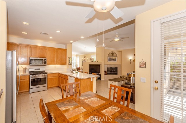**Gorgeous Golf Course View** Home in The Oasis, a premier 55+ gate-guarded community, perfectly positioned on the 3rd green of the “Lakes Course.” This rarely available and highly desired floorplan offers 2 bedrooms plus a versatile den/3rd bedroom option, featuring bright, open living spaces, fresh interior paint, plantation shutters, crown moulding, and a beautifully maintained interior plus solar keeping your utility bill to virtually zero! The living and dining area flows into a spacious kitchen with Corian countertops, a breakfast bar, generous cabinet storage, and an eat-in dining nook that opens seamlessly to the family room with a cozy fireplace, ideal for everyday living and entertaining. Both bedrooms include walk-in closets, and the updated primary bathroom showcases a stunning walk-in shower. Step outside to a beautifully landscaped backyard with a covered patio and sweeping golf course views, a peaceful, picturesque setting on a premium lot. Residents enjoy outstanding resort-style amenities, including a 22,000 sq. ft. clubhouse with auditorium and stages, dance floors, commercial kitchen, fitness center, library, computer center, billiards, and multiple activity rooms. Outdoor features include a tropical pool and spa, BBQ areas with mountain views, two lighted tennis courts, four pickleball courts, and an incredible variety of social and recreational clubs. HOA includes front yard landscaping, water, and trash service. Immaculate, thoughtfully appointed, and set in an exceptional location, this home offers the very best of golf-course resort living.