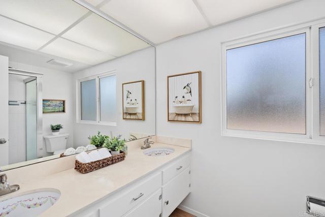 Best-Priced 5-Bedroom Home in University City — Two Primary Suites, Multigenerational Layout & Modern Upgrades. This spacious 5-bedroom, 3-bath University City home offers the rare combination of two primary suites, a first-floor primary bedroom & bath, and a highly flexible layout perfect for multigenerational living, work-from-home needs, aging in place, or long-term guests. Bright and inviting living spaces flow effortlessly to a covered patio and a large private backyard designed for indoor–outdoor living, entertaining, and everyday comfort. The remodeled kitchen (2021) features Quartz counters, LG stainless appliances, two breakfast bars, and an open-concept connection to the living and dining areas. Updated modern bathrooms and recent improvements—new furnace & A/C, LVT plank flooring, energy-efficient dual-pane windows, recessed lighting, new ceiling fans, fresh paint, and a newer roof—make this home truly move-in ready. Upstairs bedrooms offer peaceful treetop views, while the downstairs suite provides incredible versatility for in-laws, teens, guests, or a private home office. Additional highlights include RV/boat parking, a 2-car garage, workshop shed, and no HOA. Located across from Standley Recreation Center, Standley Aquatic Center, Spreckels Elementary, Standley Middle & UC High, and minutes to UCSD, La Jolla Shores, Mission Bay, UTC, biotech campuses, and major freeways, this home delivers walkability, convenience, and community.