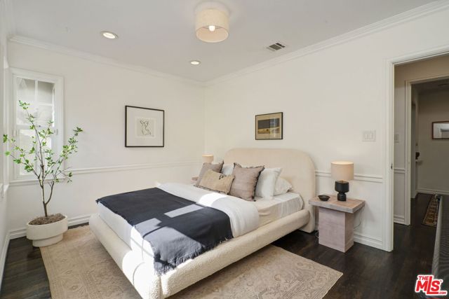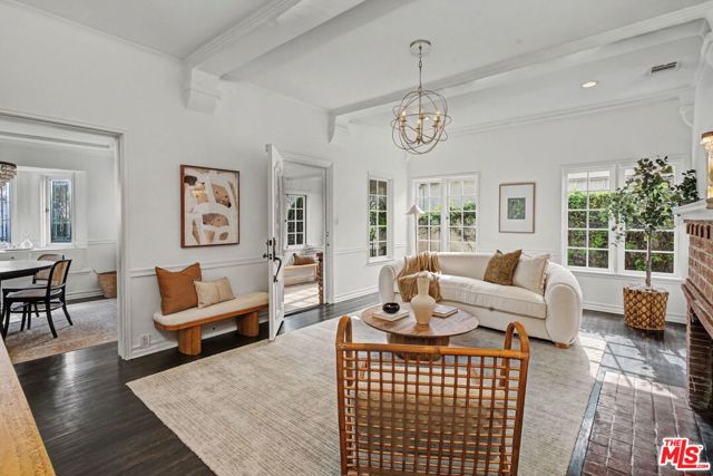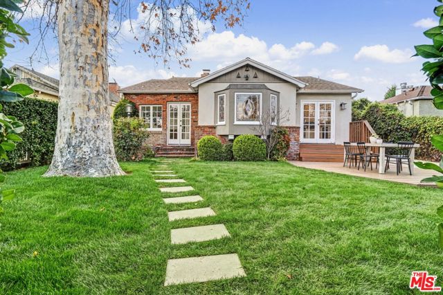 Moments from the buzz of studios and the conviviality of the shops and cafes of Toluca Lake and the NoHo Arts District sits the serene enclave of Toluca Woods. Here, on a quiet, tree-lined street in the heart of this leafy, breezy hamlet, find this fenced and gated 1930s-traditional home with a fully permitted ADU w/separate address. Enter the property beneath a towering Sycamore to find a verdant lawn framed by mature hedging and steps leading up to an East Coast-evoking mud room-style entry. Continue into a sun-drenched living room adorned with decorative beams and a red brick fireplace. Useful built-ins and handsome stained-glass windows abound in the formal dining room. Marrying old world charm with modern convenience, the kitchen has been recently updated with stone slab counters and stainless appliances while retaining another gorgeous stained-glass window from yesteryear. The option to dine al-fresco is ever apparent with French doors leading from the kitchen directly to a sizable, sunny patio. Back inside, the primary bedroom boasts an ensuite flex space that easily functions as an office, home gym, massive walk-in closet, or a 4th bedroom/nursery. Down the center hall, two additional well-sized bedrooms flank a hall bathroom with a deep soaking shower-tub combo, while through a hall closet discover a cavernous wood-paneled California basement offering copious storage space. At the rear of the residence lies a massive family room opening up to a multitude of outdoor entertaining spaces with string lights and a gas BBQ hookup -- an ideal setup for indoor-outdoor living. Beyond the rear terrace sits the newer ADU, completed in 2022 with permits and boasting a full kitchen with high-end appliances. With hardwood floors throughout, central HVAC, and tankless water heaters, this spacious abode is truly turnkey and ready for its next owner.