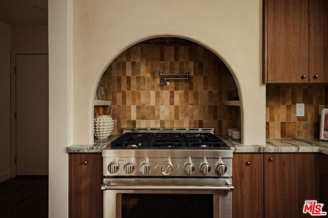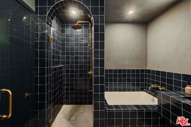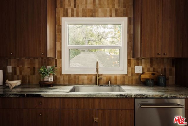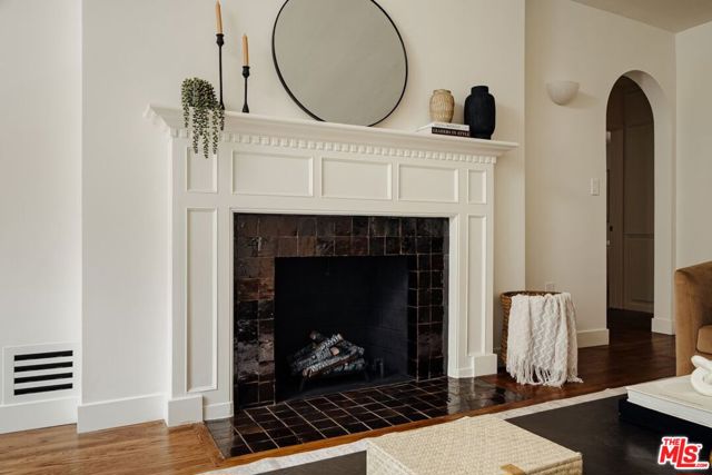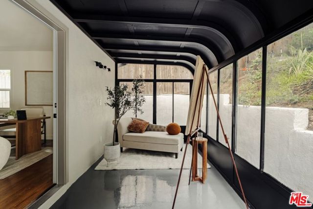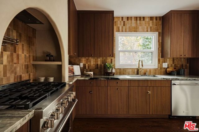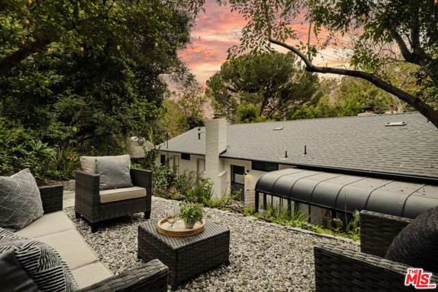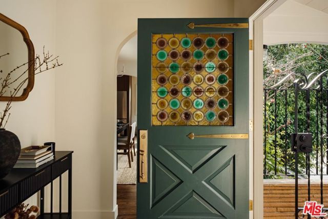 Nestled above a tree lined street in the heart of Beachwood Canyon, this reimagined retreat is a masterclass in "curated yet effortless" living, where historic soul meets bold, modern drama. The residence welcomes you through a vintage original door into a charming foyer grounded by rich, reclaimed hardwood flooring throughout. The heart of the home is a luminous chef's kitchen; a design centerpiece featuring striking marble slabs, bespoke cabinetry, and top-of-the-line appliances seamlessly integrated for a sleek aesthetic. A walk-in pantry and a stylish breakfast banquette add a layer of everyday convenience to this high-design space. The living areas offer a sophisticated rhythm, shifting from sun-drenched to intimate and moody, where a formal dining area flows into the living room anchored by a statement fireplace framed in hand-crafted Zellige tile. Adding to the home's versatility is a stunning covered sunroom an inspiring "flex" space flooded with natural light, perfect for a creative art studio, a quiet home office, or a vibrant playroom. The secluded primary suite serves as a personal sanctuary above the city, featuring a romantic fireplace, tailored custom closets, and a spa-inspired bathroom. Two additional generously sized bedrooms provide comfort and privacy with large custom closets, complemented by a full guest bath with separate shower, double vanity finished with designer tile and an elegant powder room, each with premium fixtures. Beyond the visible artistry, this turnkey masterpiece is meticulously future-proofed with high-end infrastructure, including a new 200-amp electrical panel, updated plumbing, a newer roof, and a comprehensive new HVAC system with an Ecobee smart thermostat. Modern intelligence is woven into the home's DNA via Wi-Fi-controlled recessed lighting on dimmers, integrated USB-C charging outlets, and new black-framed windows that frame the canyon views. The lifestyle extends outdoors to a tiered, private backyard designed for the quintessential California dream, featuring a wood-burning fire pit and an elevated yard with lush, mature landscaping and wise beautiful trees. Offering the rare canyon luxury of ample parking and a finished two-car garage complete with a 50-amp EV outlet. Located just blocks from the iconic Beachwood Cafe and Market, this home represents a rare opportunity to own a piece of Hollywood history reimagined with every conceivable modern luxury.