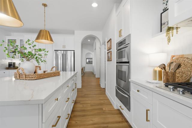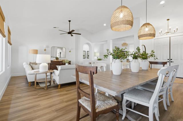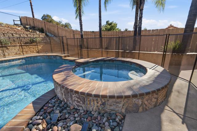 Nestled on a peaceful cul-de-sac in the highly sought-after Rancho San Vicente Estates, this beautifully maintained single-story home, built in 2000, offers 4 bedrooms and 2 baths with a spacious open floor plan. The heart of the home features a large, updated kitchen with quartz countertops, high-end cabinetry, and a seamless flow into the great room with a cozy fireplace—perfect for entertaining or relaxing with family. Enjoy formal dining and a generous living area, all enhanced by natural light and elegant finishes. Step outside to your private backyard oasis, complete with a low-maintenance artificial turf, blooming white roses, a covered patio ideal for entertaining, and a sparkling saltwater pool. RV parking adds convenience for outdoor enthusiasts. Additional features include leased solar, all-new flooring, fresh paint, and new window treatments throughout. The home includes two garages—one two-car and one single-car—plus a large driveway providing ample extra parking. A charming front courtyard adds curb appeal and a welcoming entrance. This home combines modern comfort with outdoor lifestyle, all in the tranquil setting of Ramona.